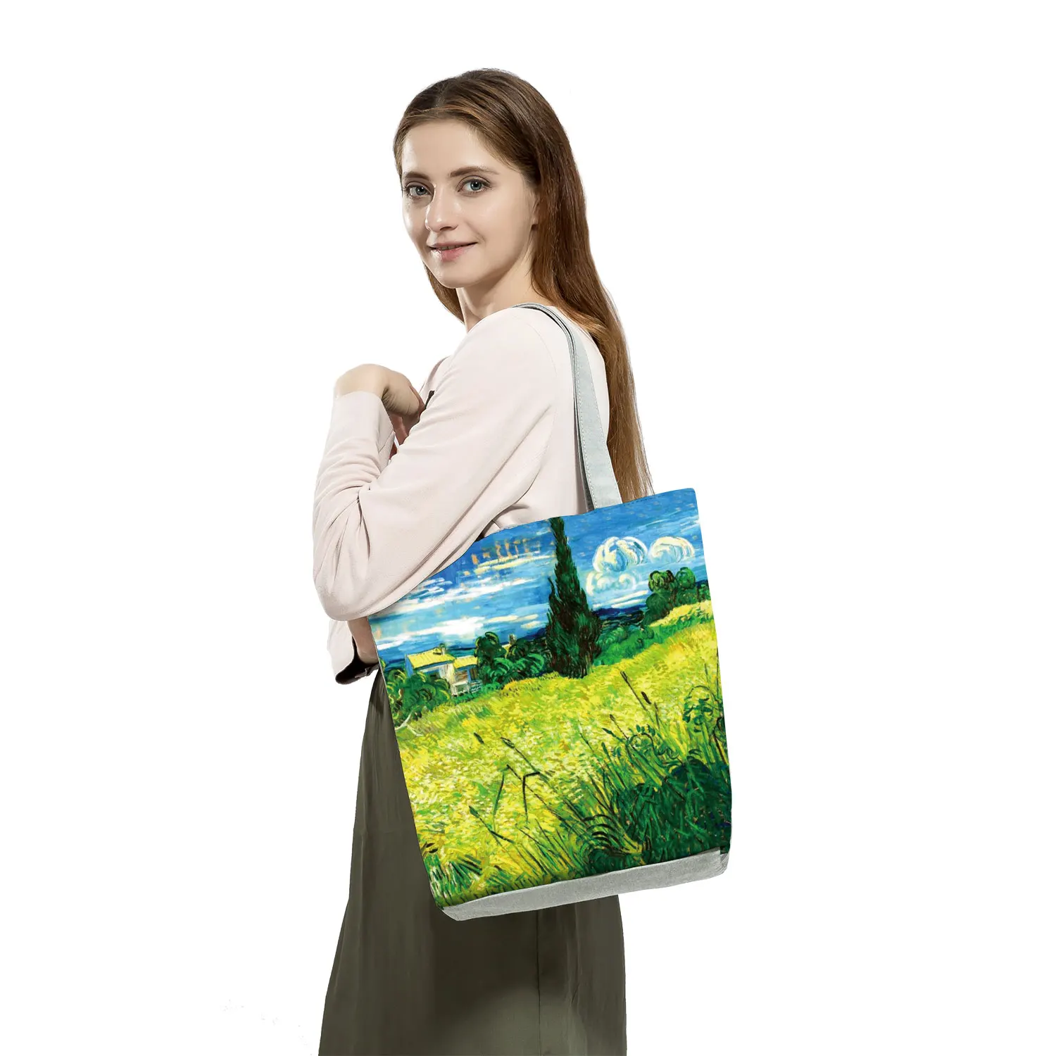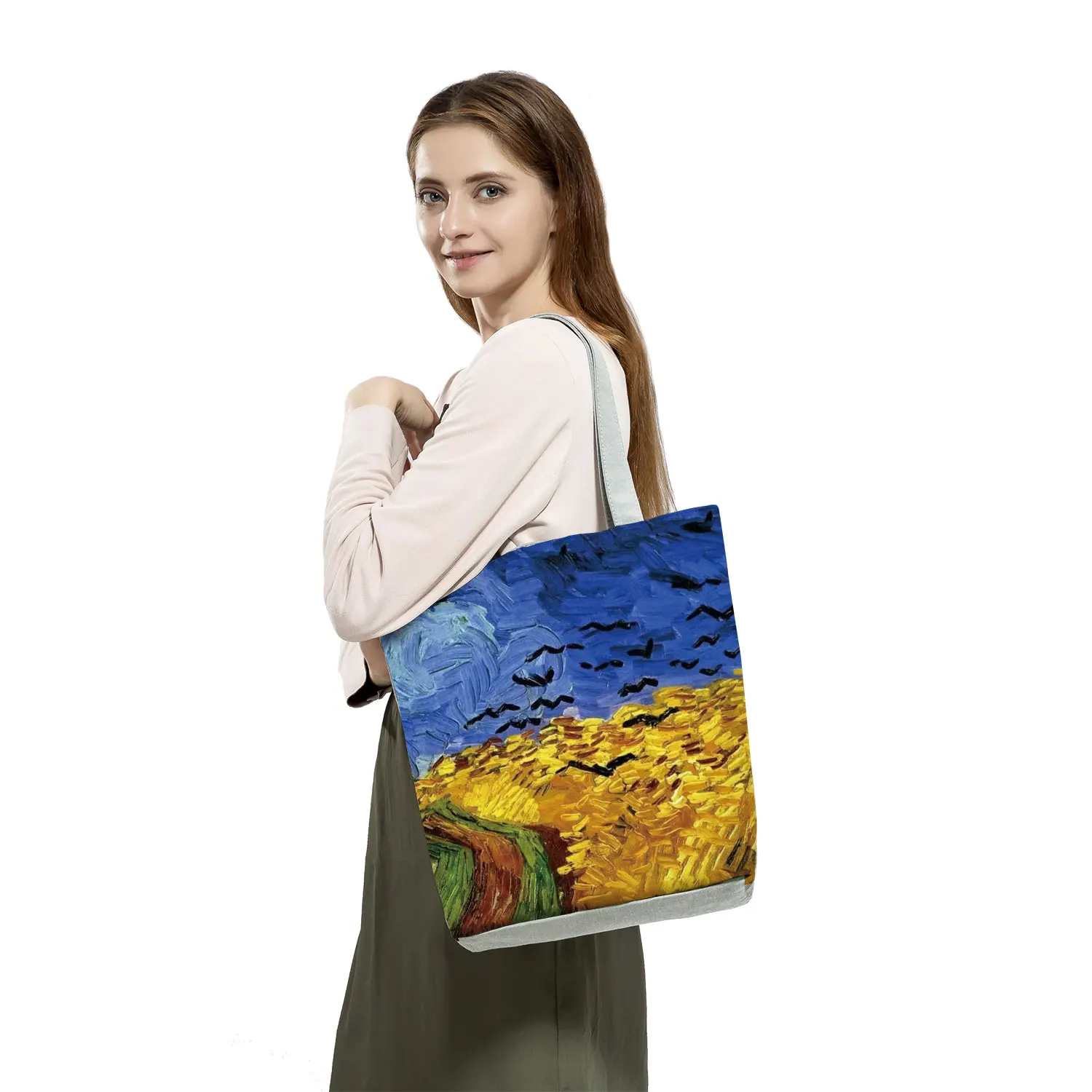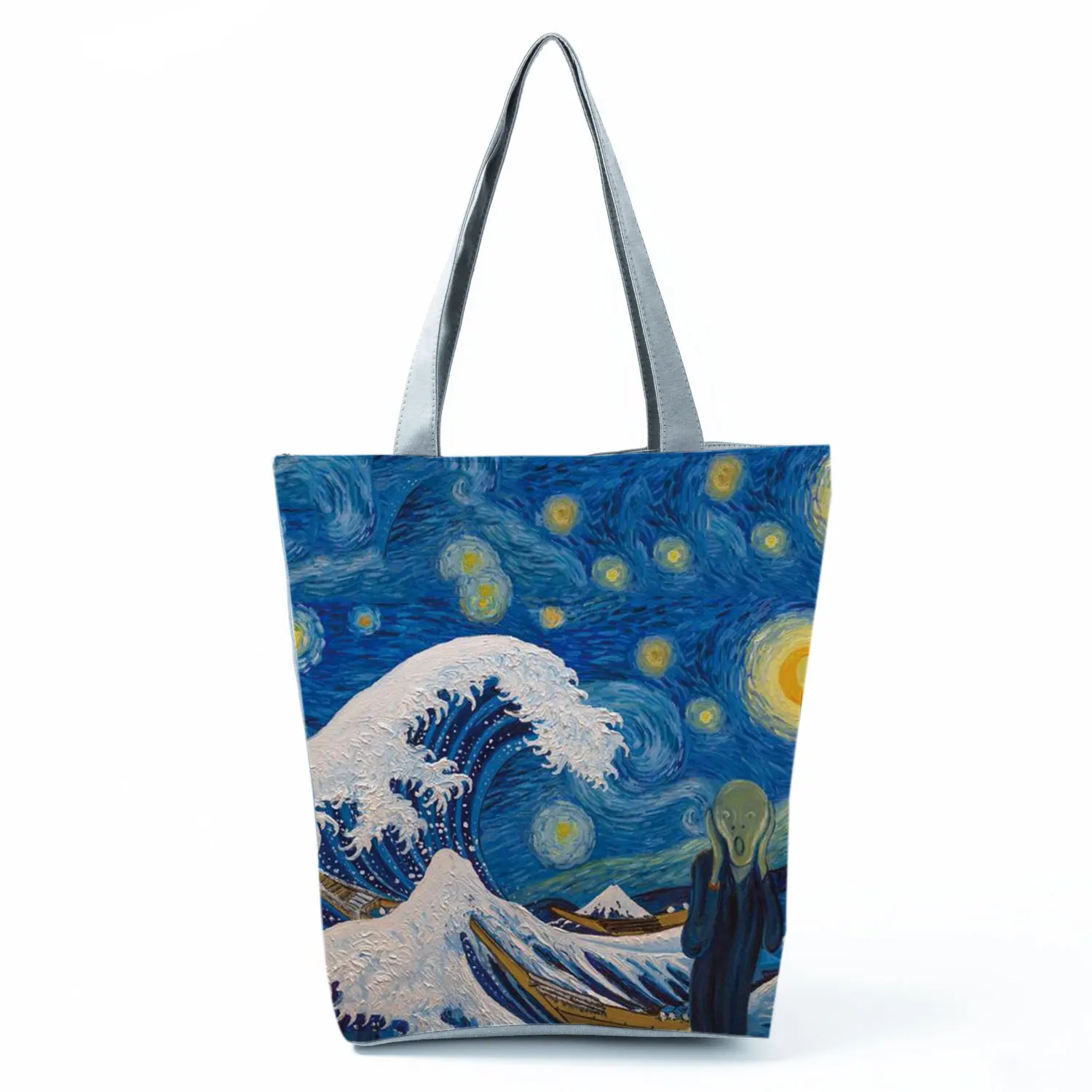 Новинка Ван Гог Картина маслом Холщовая Сумка-тоут ретро искусство модные дорожные сумки женские для отдыха Эко Шоппинг Высокое качество складная сумка