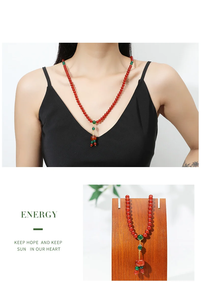 Трехслойный китайский браслет JD из красного агата диаметром 6 мм, искусственный и зеленый агат, подвеска ручной работы, ожерелье, винтажный подарок для женщин