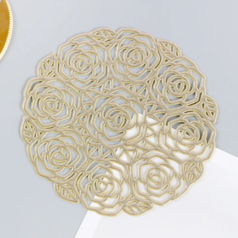 Коврики для обеденного стола Из бронзового ПВХ, полые Нескользящие салфетки, изоляционные подставки, термостойкие коврики для украшения дома