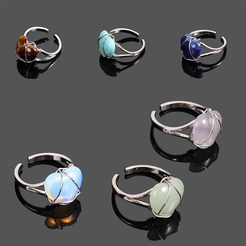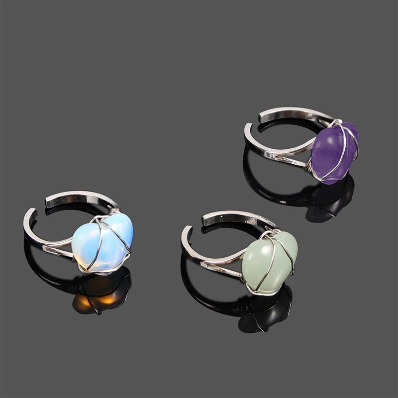 Кольца в форме сердца из натурального кристалла, кольца ручной работы для пар, креативные регулируемые открытые ювелирные изделия, кольцо для женщин и девушек, подарок