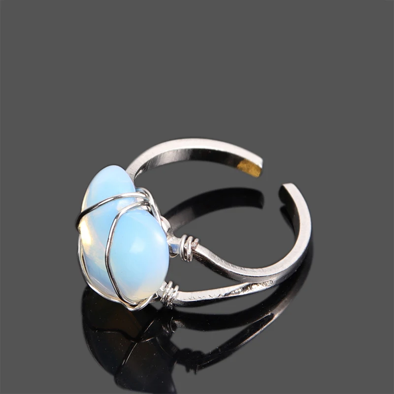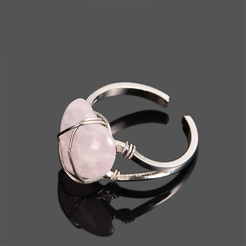 Регулируемые кольца из натурального кристалла в форме сердца, кварц...