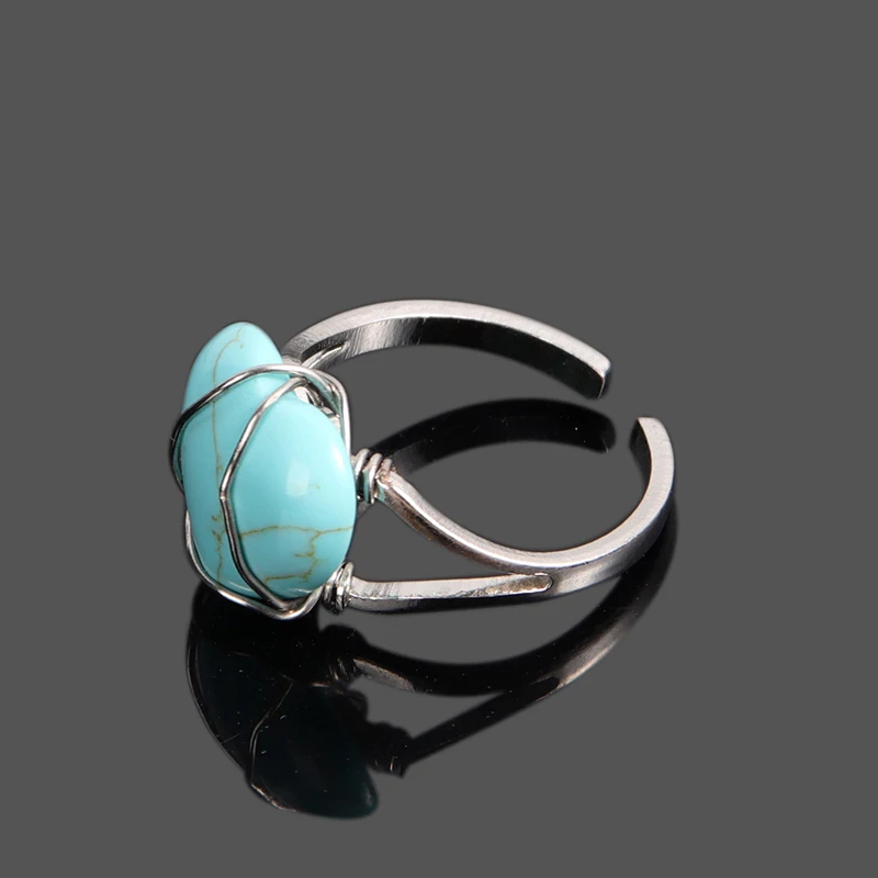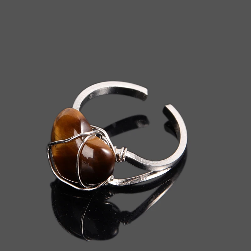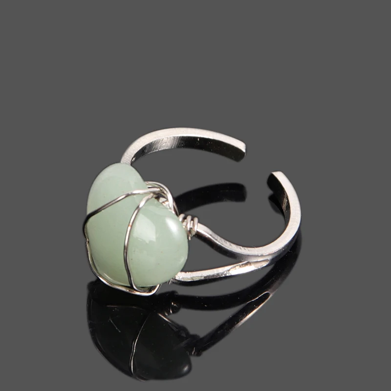 Кольца с натуральным кристаллом, регулируемые, в форме сердца