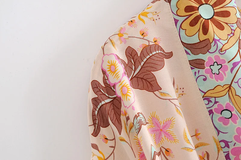 Женское винтажное богемное кимоно с цветочным принтом, V-образным в...