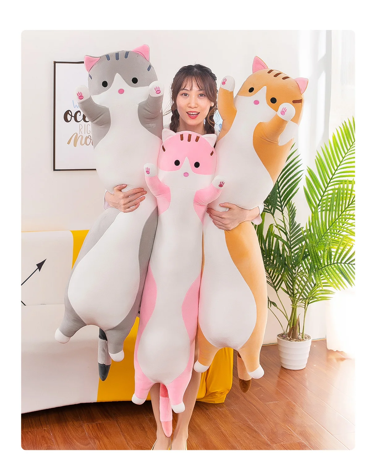 50 см, 3 шт., милая подушка в виде кошки, милые длинные плюшевые иг...