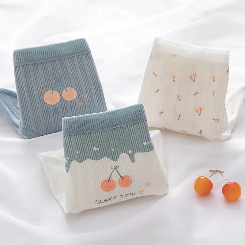 Трусики женские хлопковые бесшовные с мультяшным рисунком вишни