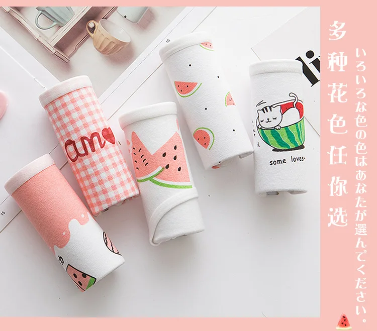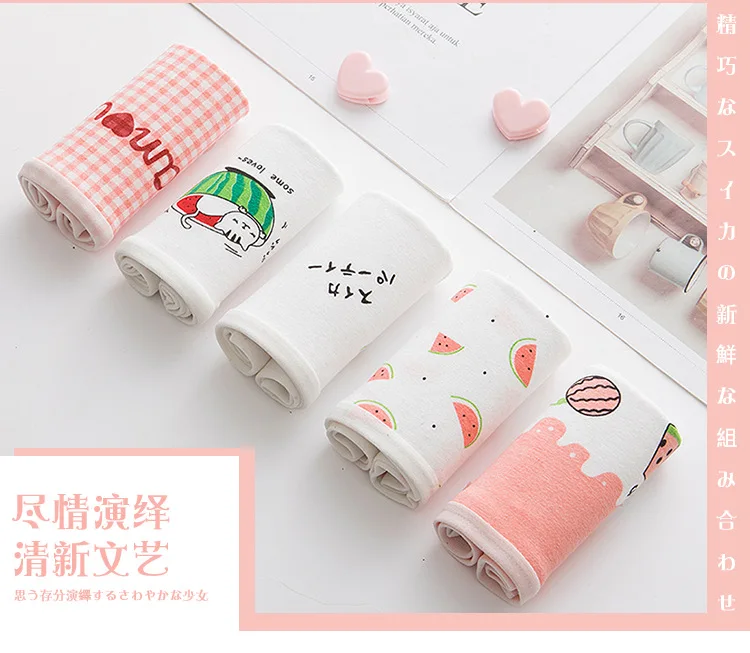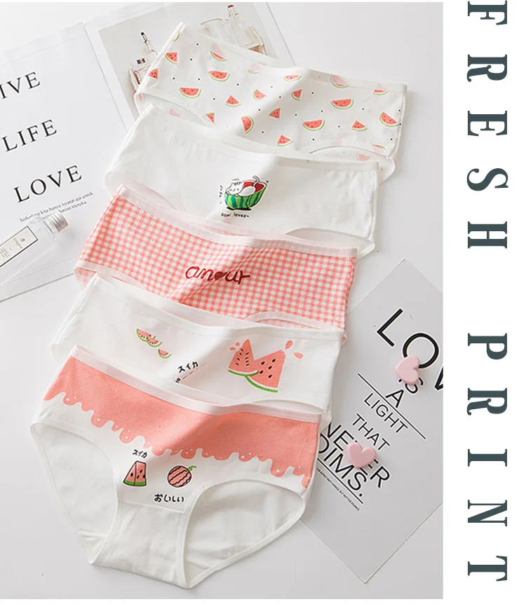 5 шт.комплект, женские хлопковые трусы с принтом фруктов и арбуза