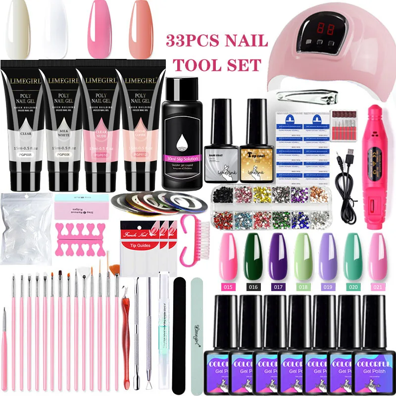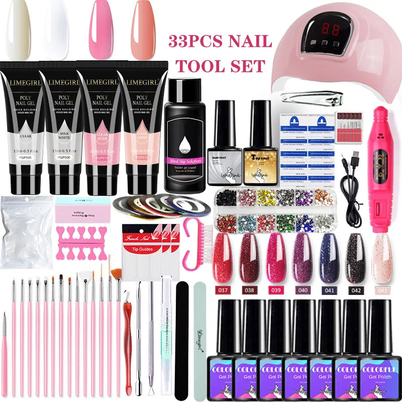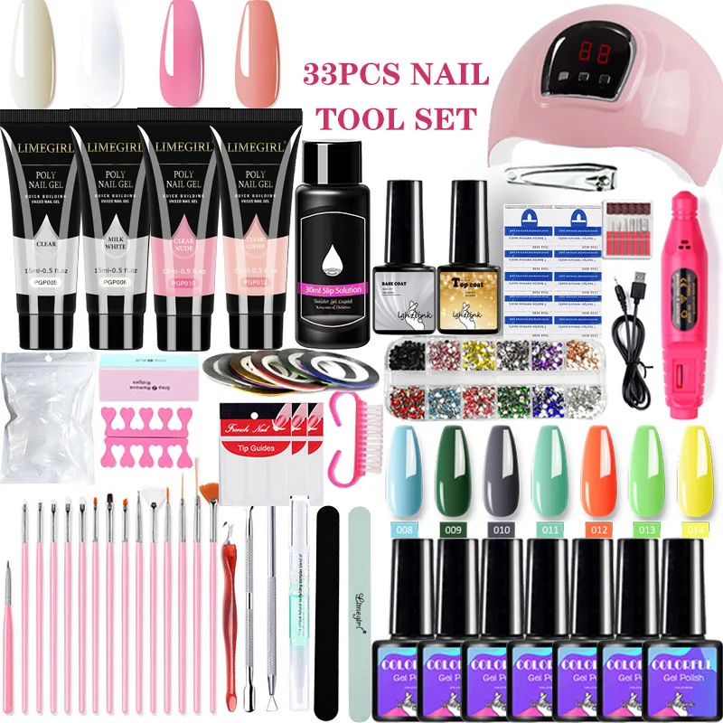 Базовый маникюрный набор для наращивания ногтей, 33 шт., быстрое строительство, полигели 54 Вт, светодиодная лампа для ногтей