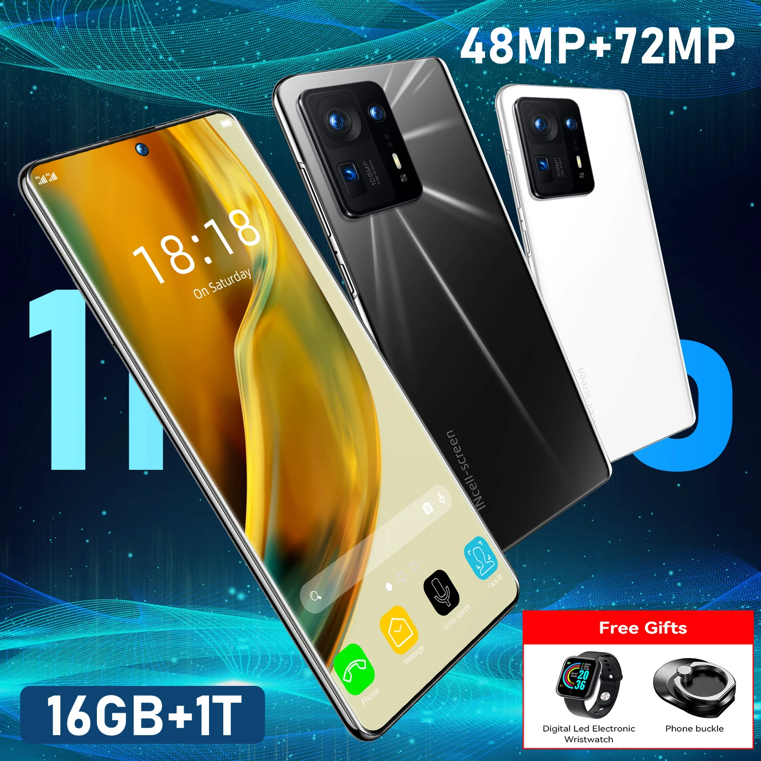 Смартфон, 7,3 дюйма, 16 ГБ + 1 ТБ, Android 12, 4Gтелефон, 48 Мп + 72 м