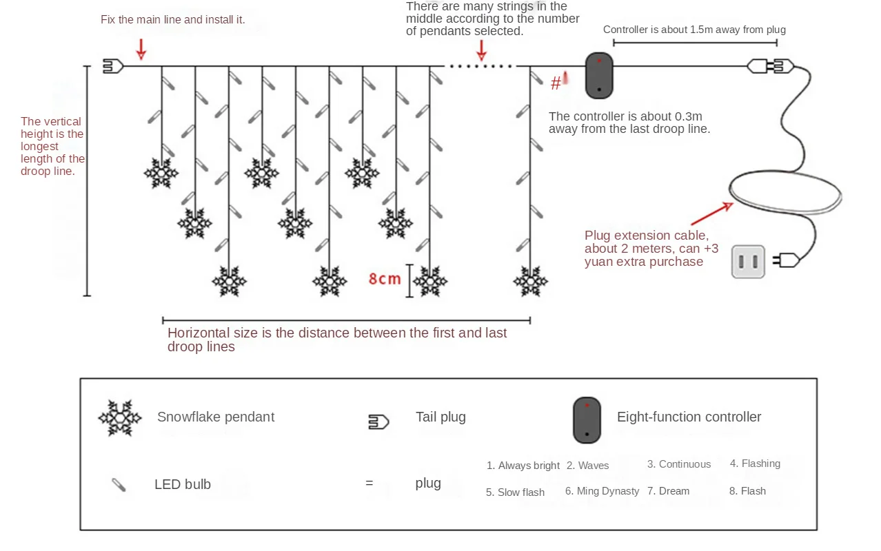 Гирлянда со снежинками, гирлянда-занавеска, светодиодная гирлянда, ...