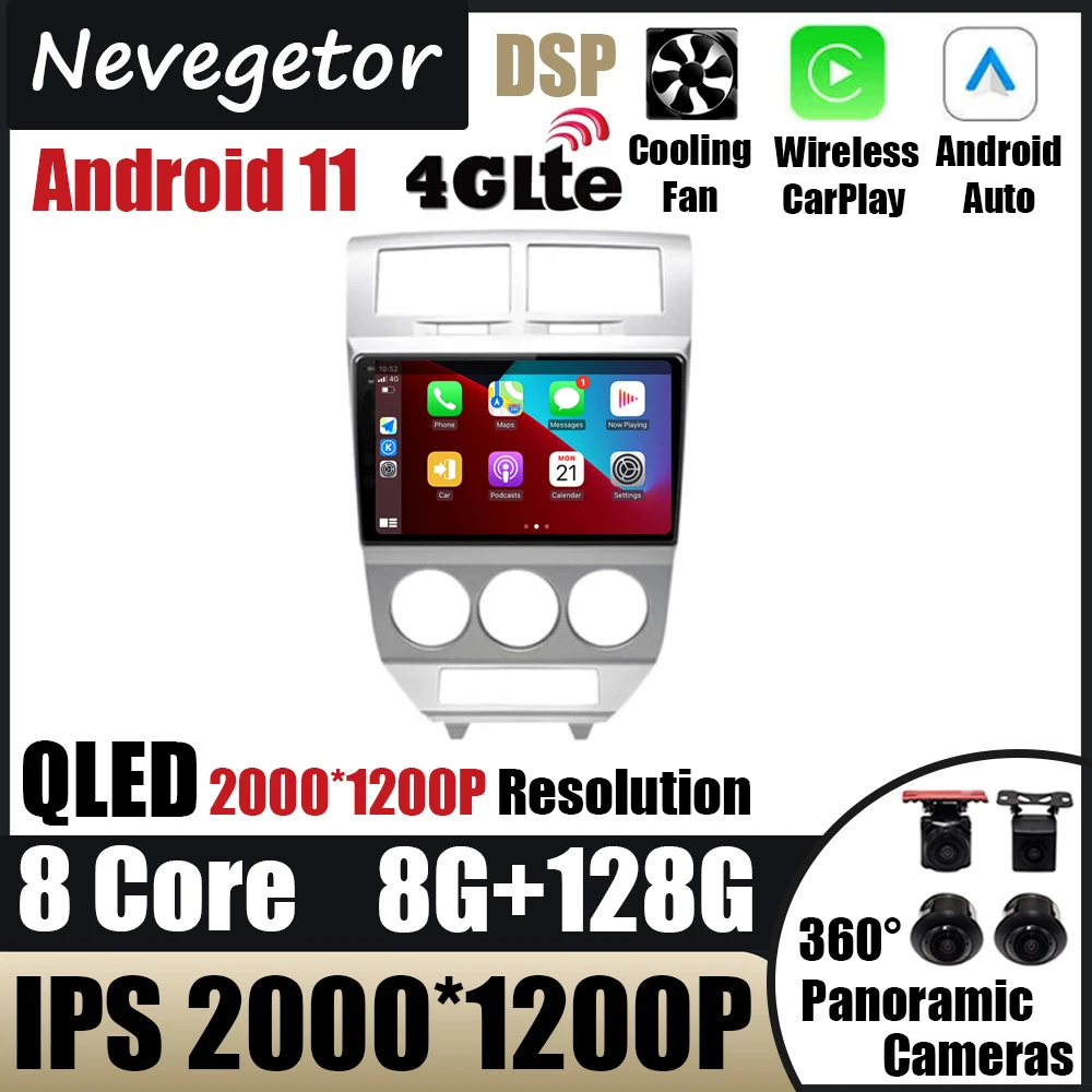 Android 11 для Dodge Caliber 8G + 128G автомобильное радио, мультимедийный плеер, головное устройство 2007-2010, Авторадио с сенсорным экраном, GPS-навигацией