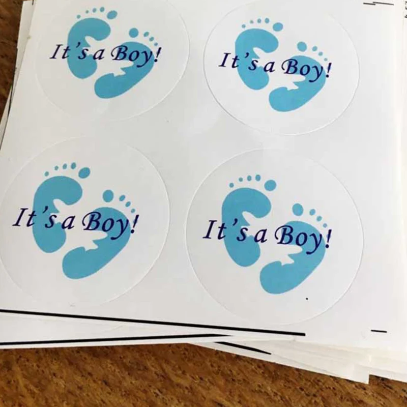 100 шт., круглые наклейки для мальчиков и девочек, самоклеящиеся этикетки для печати, вечерние товары для детского душа, подарочная коробка