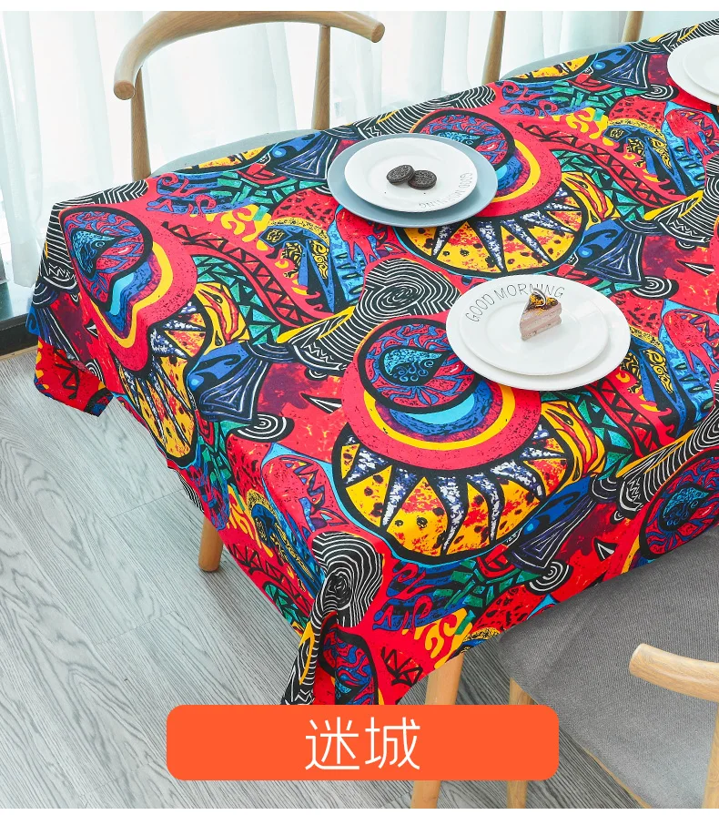 туалетный столик скатерть круглая Скатерть в этническом стиле ретро с принтом, богемное украшение для дома и ресторана, коврик для стола, кофейный столик, прямоугольная Водонепроницаемая скатерть