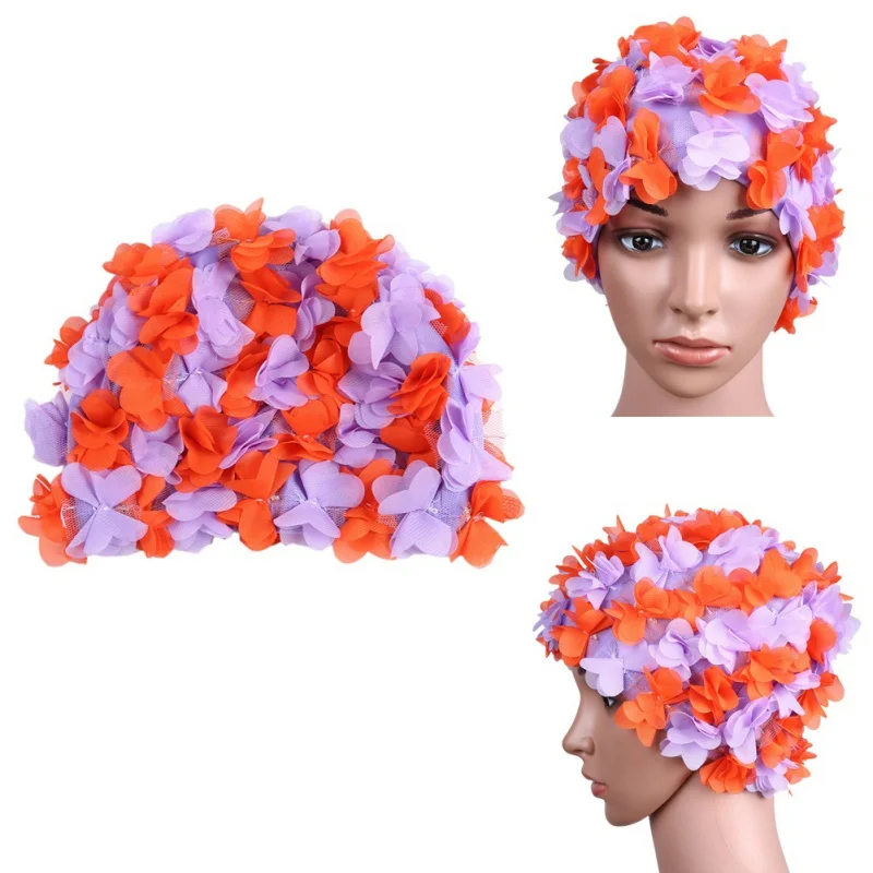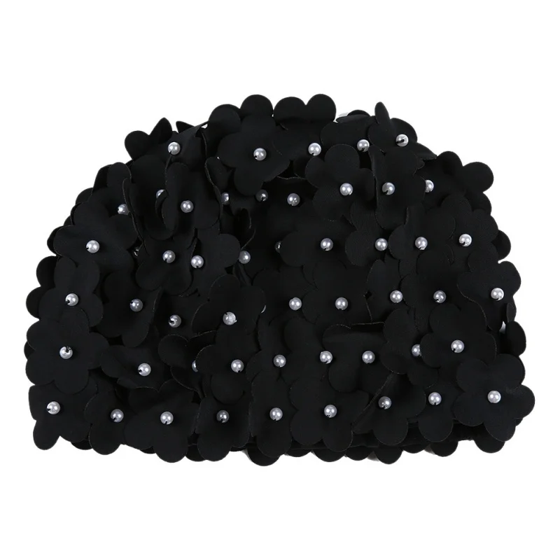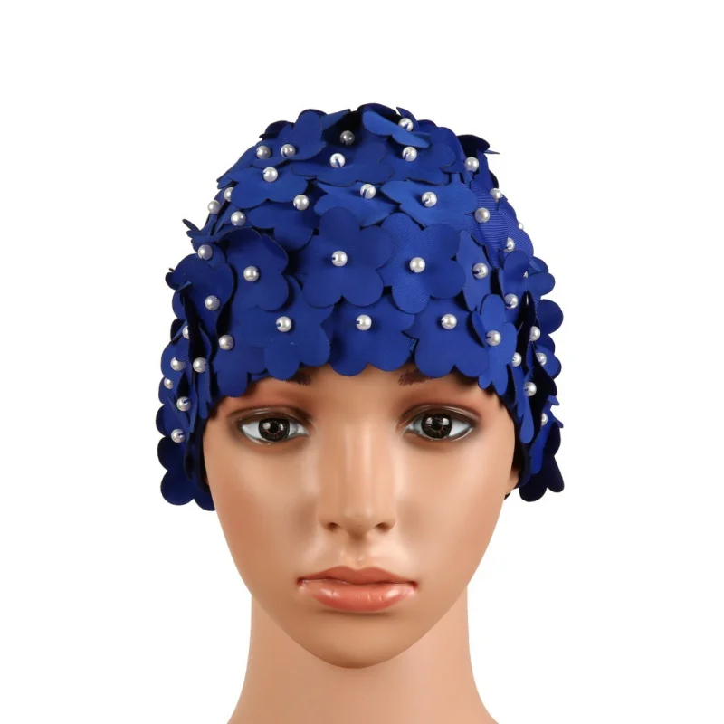 Шапка для плавания ручной работы, Женская эластичная дышащая быстросохнущая шапка для купания с жемчужинами и цветочным узором