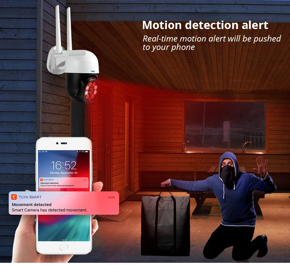 Когда камера обнаруживает движущийся объект, камера автоматически отслеживает движущийся объект, не пропуская никаких подозрительных следов.