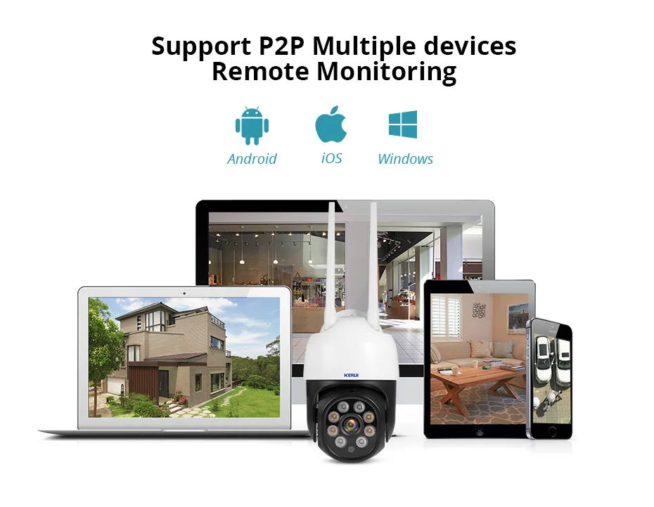 Наружная камера Kerui Tuya 1080P 3 Мп PTZ Wi-Fi IP-камера 4-кратный цифровой зум ИК датчик присутствия Wi-Fi камера видеонаблюдения