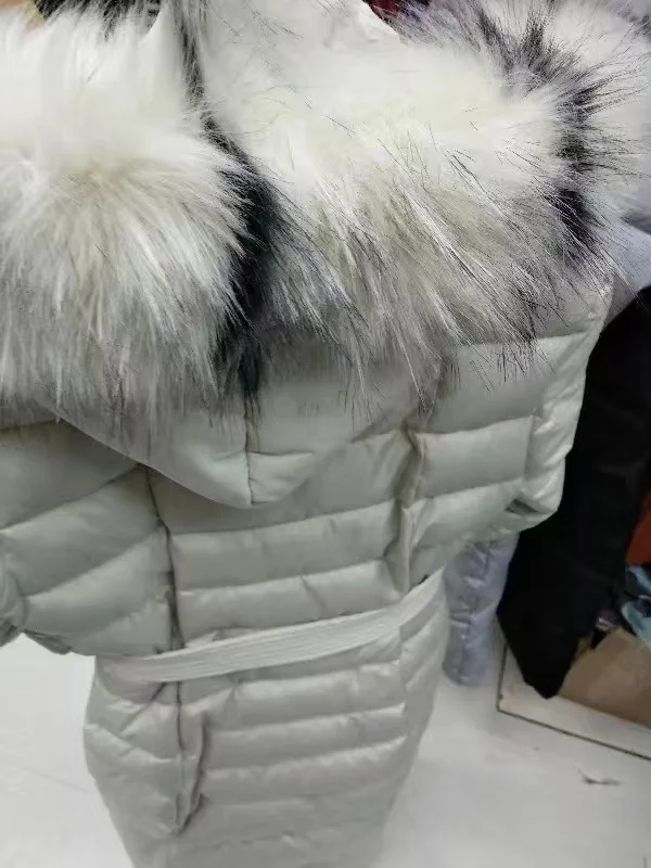 Новинка 2021, зимняя куртка, женское теплое модное пальто с бантом на поясе и воротником из лисьего меха, длинное платье, женское плотное пальто, Женское зимнее пальто