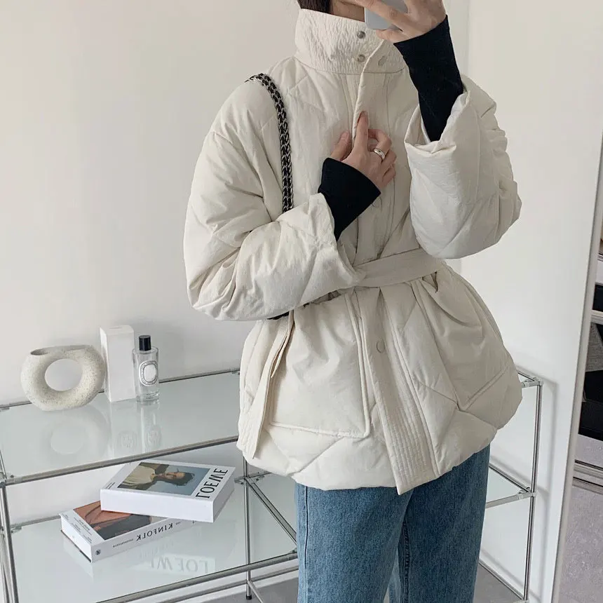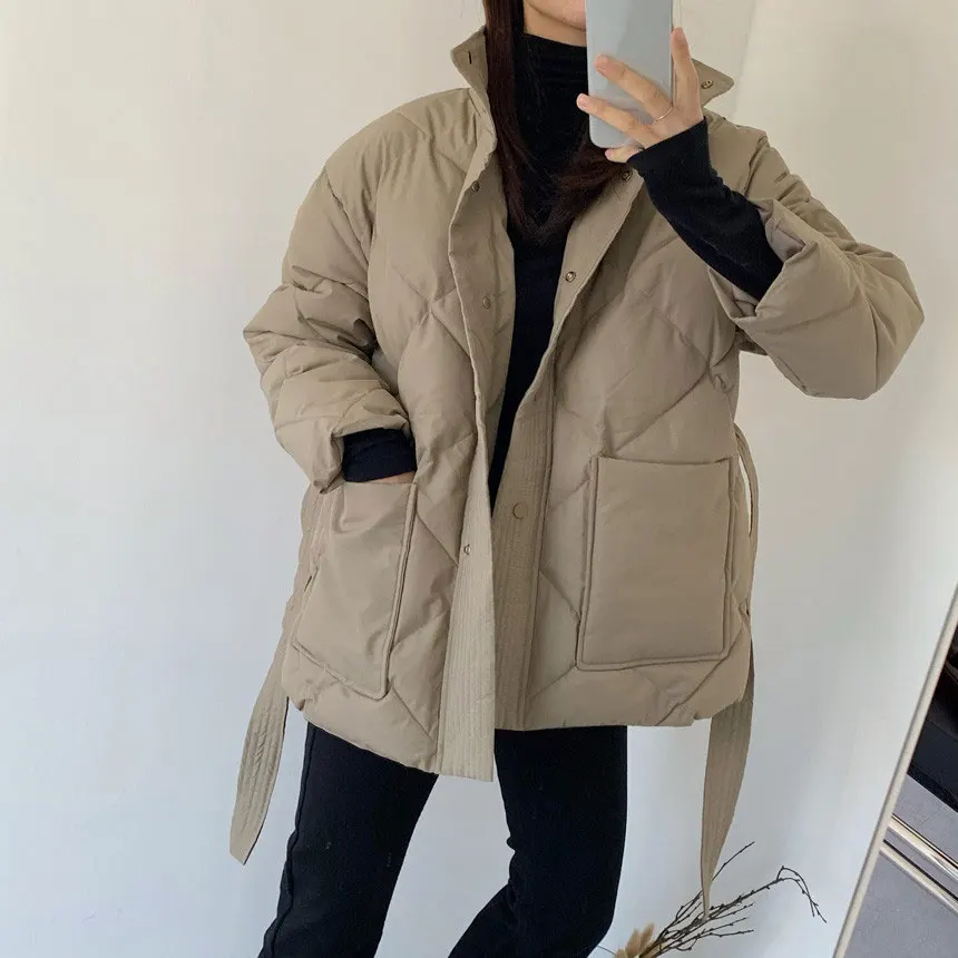 2021 зимние плотные пальто с хлопковой подкладкой, женские однобортные женские парки на молнии со шнуровкой, женские куртки с воротником-стойкой и карманами