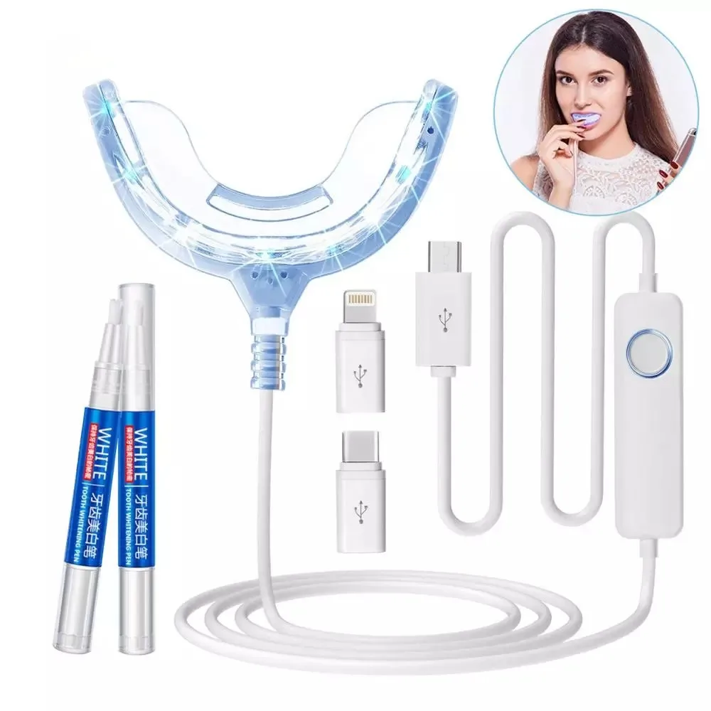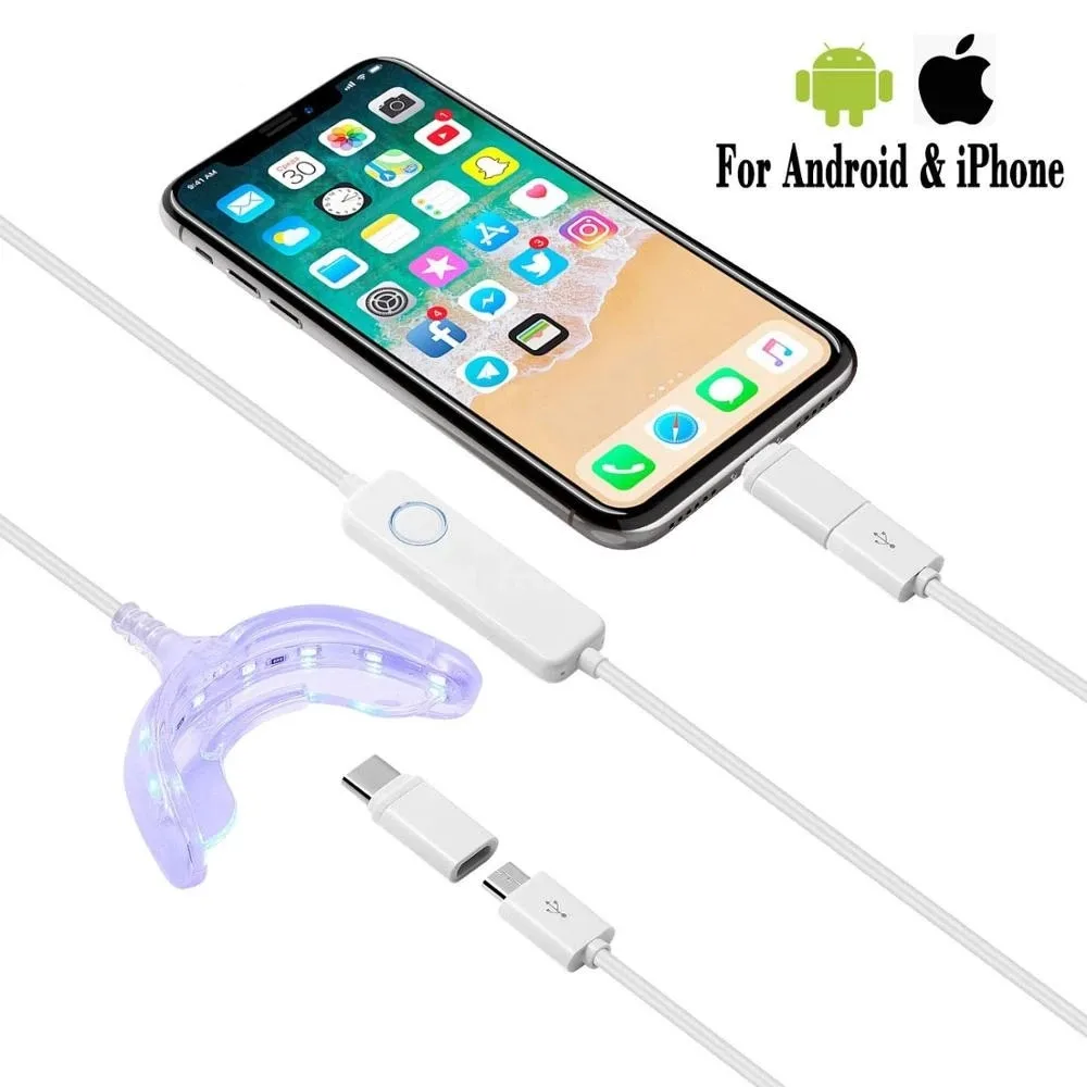 Портативный Умный светодиодный отбеливатель холодного синего света, устройство для отбеливания зубов, комплект геля для отбеливания зубов с 2 портами для отбеливания зубов на Android IOS