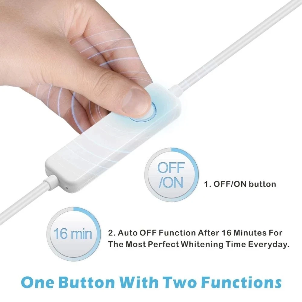 Примечание: отбеливание зубов-это не одноразовая процедура, ее нужно будет периодически повторять, если вы хотите сохранить более яркий цвет, особенно для людей, которым нравится курить, пить кофе, пищевой краситель, обычно каждые полгода нужно делать отбеливание зубов,Таким образом, вы можете держать этот 16LED холодный светильник в пыленепроницаемой коробке для следующего лечения, в следующий раз вам нужно только купить отбеливание зубов полоски или отбеливание зубов ручка.