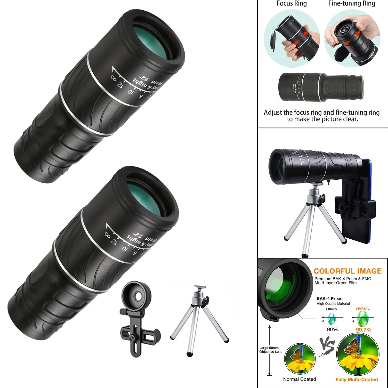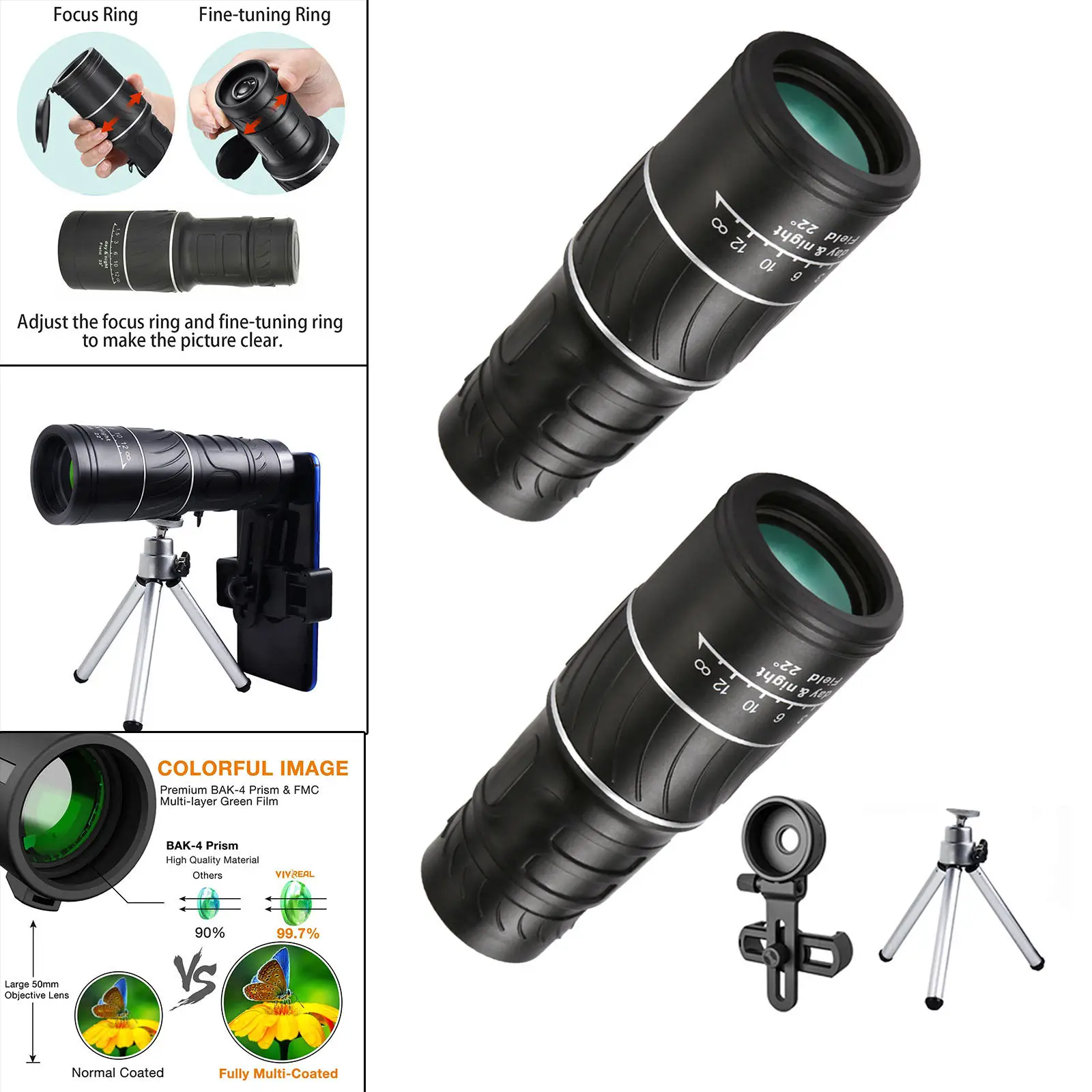 Мощный: компактный и легкий. Высококачественная оптика обеспечивает высокое качество обзора.Монокуляр: с дизайном призмы BAK4, давая вам более четкие и красочные пейзажи.Водонепроницаемая защита и ночное время: телескоп является водонепроницаемым, пыленепроницаемым и противоударным, разработан прочный и стильный, идеально подходит для любой погоды или климата, четкие изображения можно увидеть в условиях низкий светильник, но не подходит для полных.Легко носить с собой: управление одной рукой. Портативный и легкий дизайн может эффективно уменьшить нагрузку на путешествия, вы можете поместить монокулярный телескоп в рюкзак или вы можете его на руке или талии.Используется для: гонок, пляжа, наблюдения за птицами, катания на лодках/яхте, скачек, охоты, активного отдыха, спорта, театра, путешествий