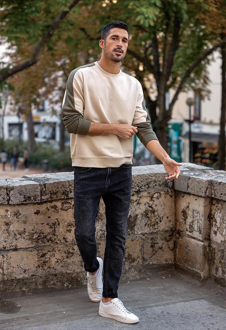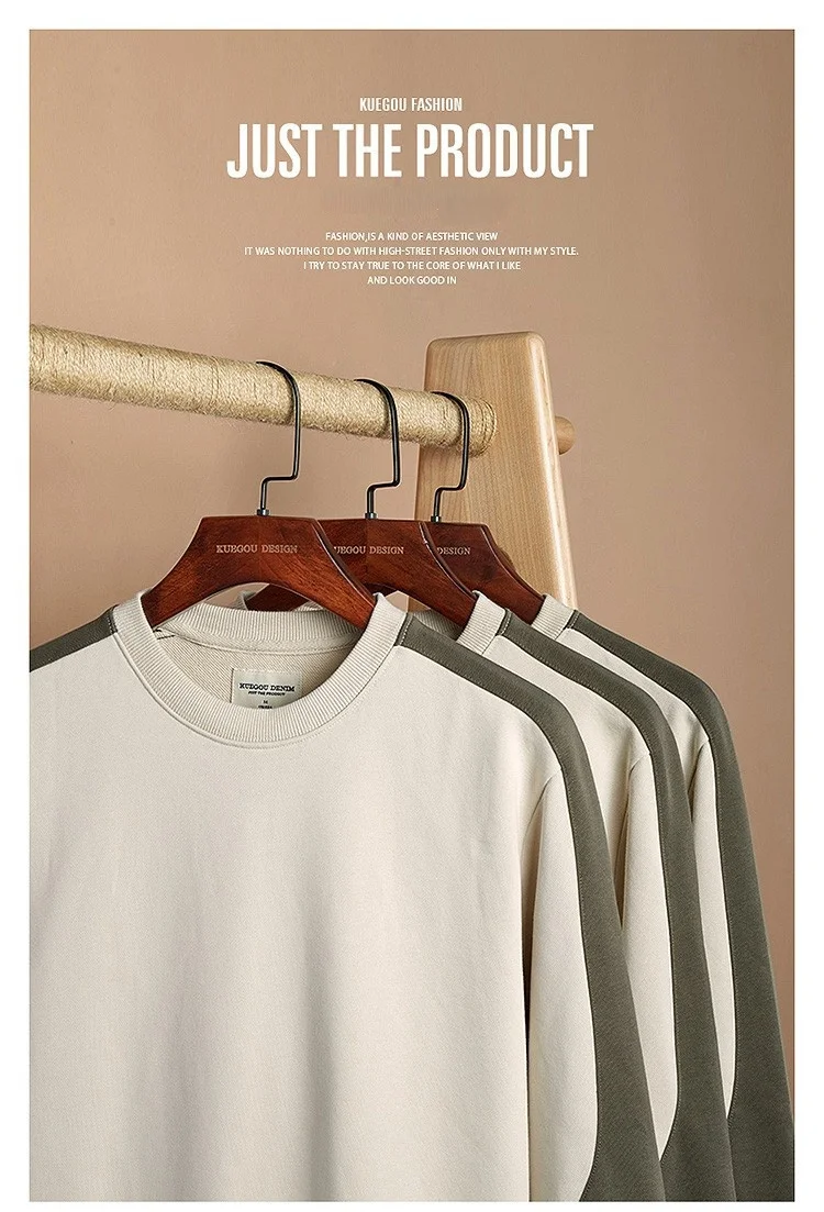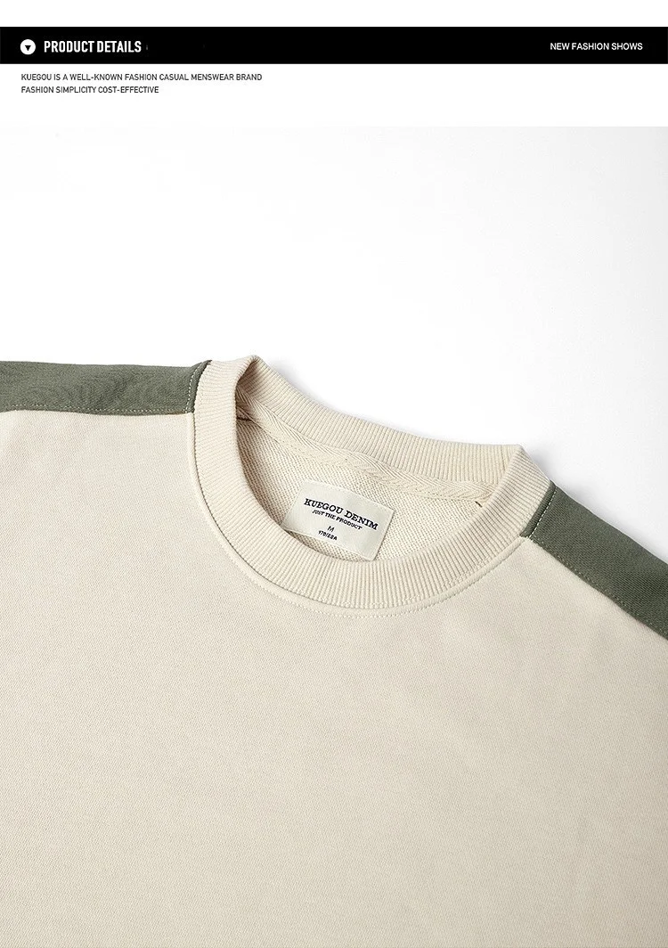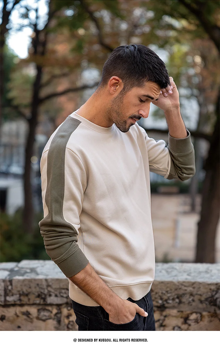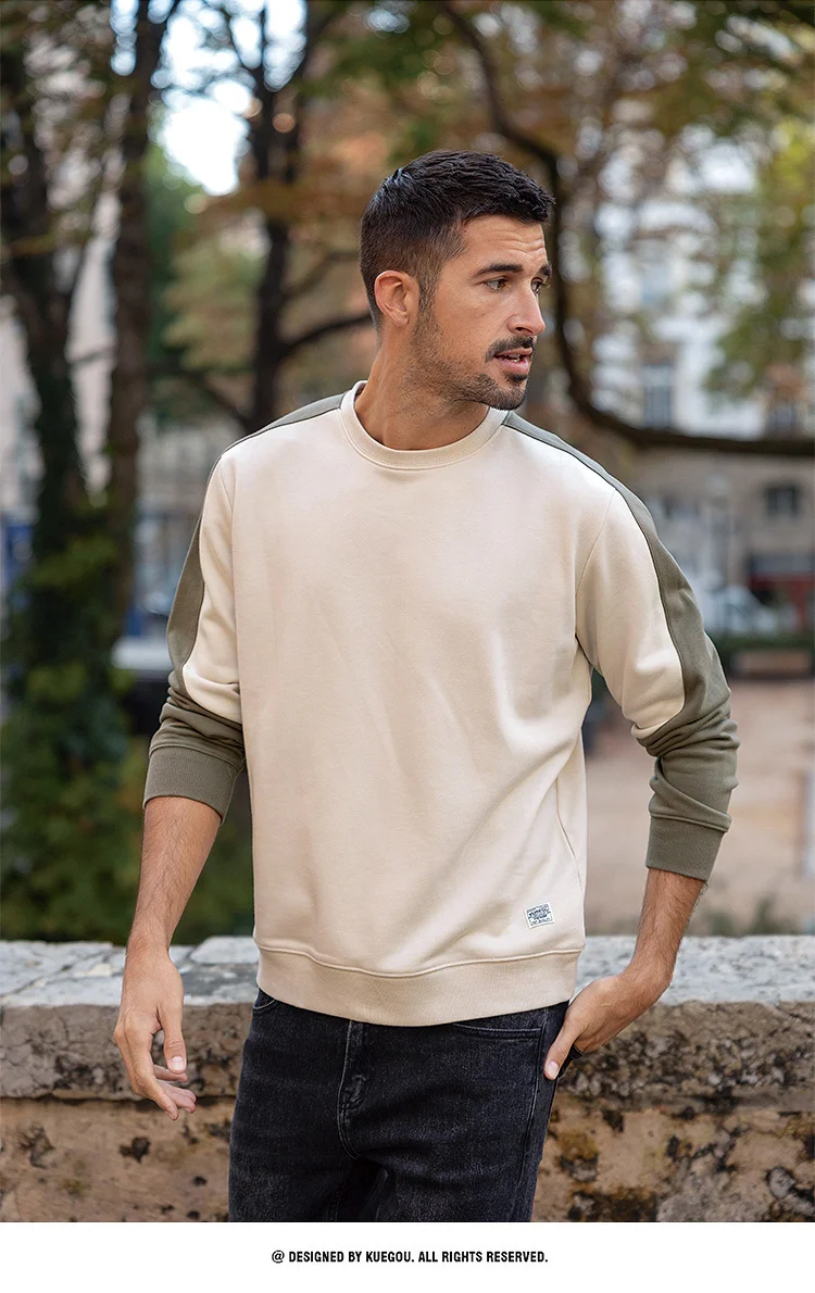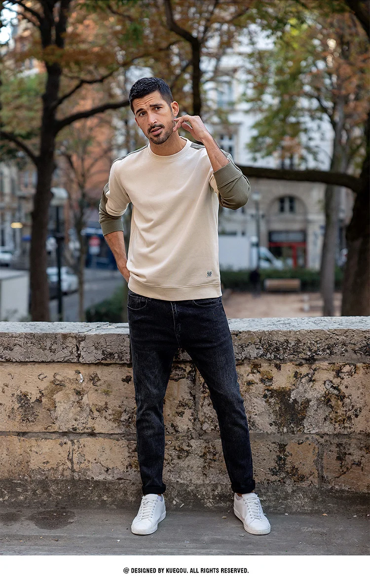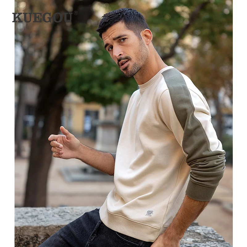 KUEGOU 2022 весенний хлопковый однотонный абрикосовый свитер с буквенным принтом, Мужская облегающая модная уличная одежда размера плюс 60087