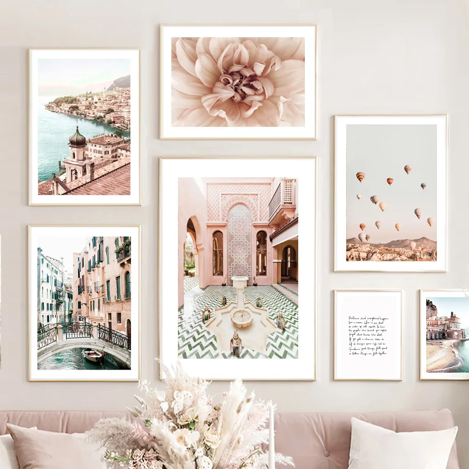 Вид на город Венеция Cappadocia Dahlia пляж горы нордические стены искусства холст картины плакаты и принты Декор интерьера гостиной