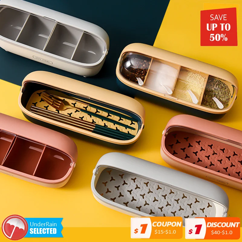 Кухонная коробка для приправ с 4 ячейками, стеллаж для соли, перца, специй, стеллаж для кухонных гаджетов, Наборы устройств, коробка для специй, органайзер, инструмент