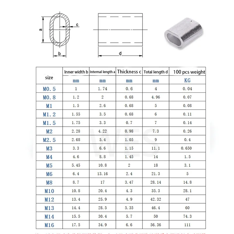 Стальной трос, алюминиевый одинарный корпус ОБЖИМНАЯ втулка, Овальный алюминиевый обжимный кольцевой рукав