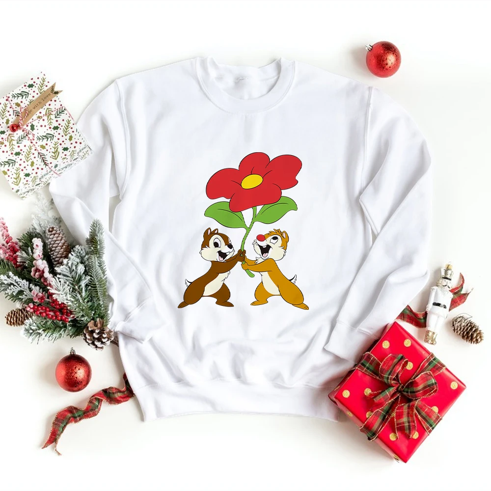 Осенний Повседневный детский пуловер для улицы, милая одежда для малышей с изображением чипа и Дейла, белая толстовка с длинным рукавом и круглым вырезом