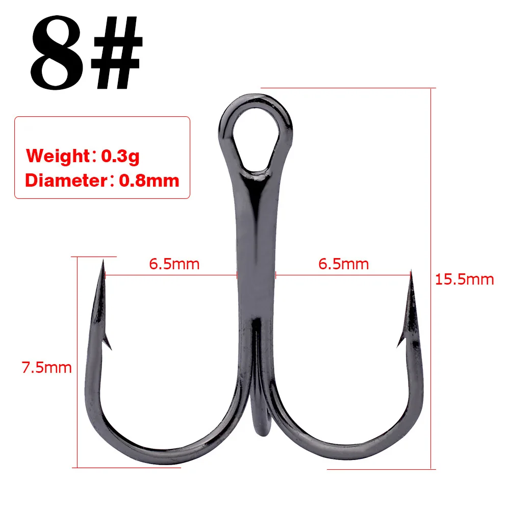 Рыболовный крючок 20 шт.лот, 24681012 #, из высокоуглеродистой стали, черные тройные Крючки, инструмент, круглый изгиб, крючок для ловли окуня, карпа, снасти, аксессуары