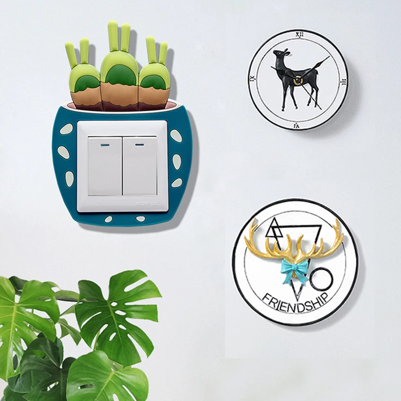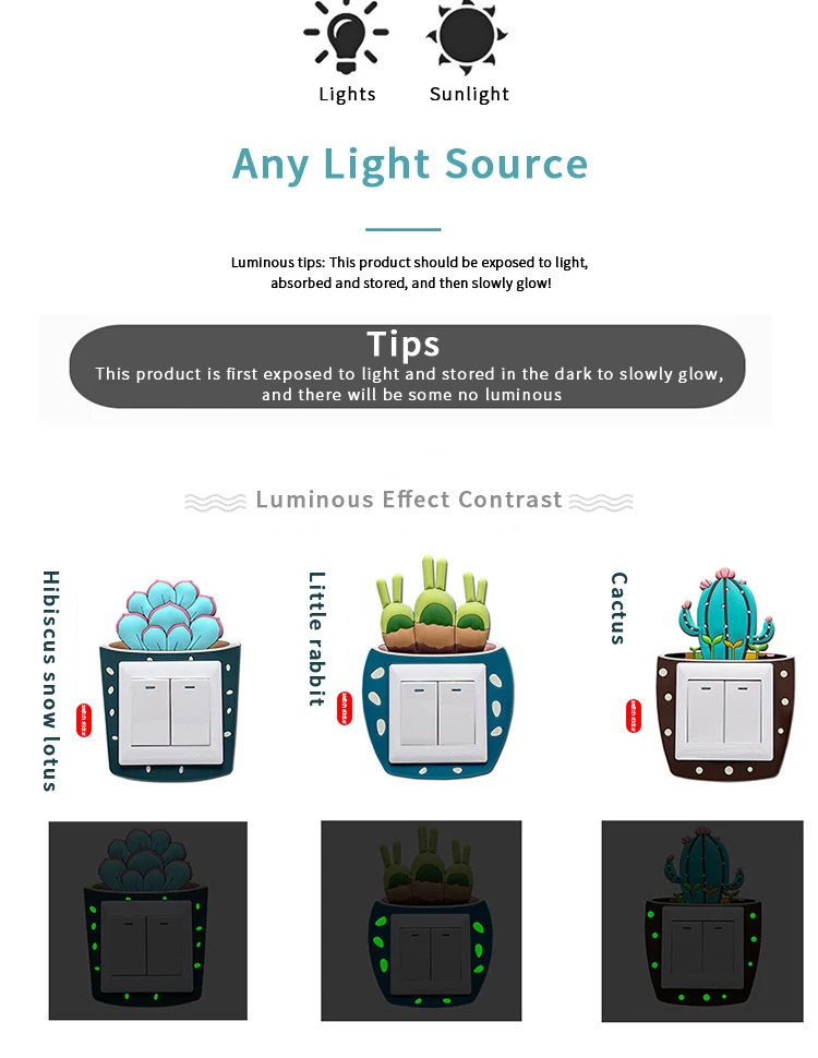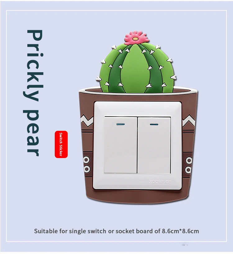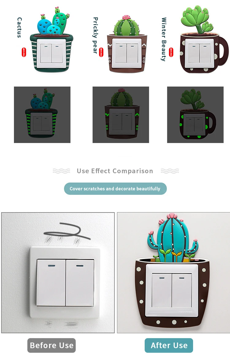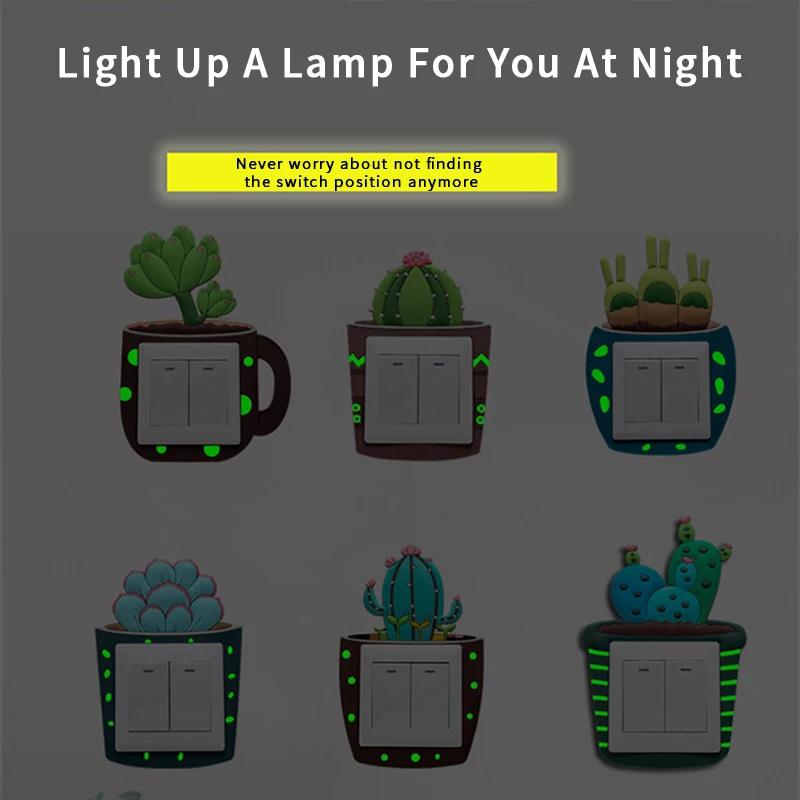 Светящаяся наклейка с мультяшным изображением кактуса, декор комнаты, 3D Настенный силиконовый ВКЛ-ВЫКЛ переключатель, светящийся светильник, переключатель на выходе, настенная наклейка