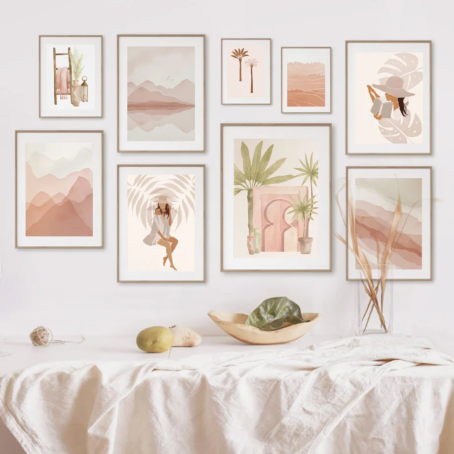 Абстрактная Картина на холсте в стиле бохо с изображением монстеры девочки и растений, настенные картины и принты в скандинавском стиле для декора гостиной