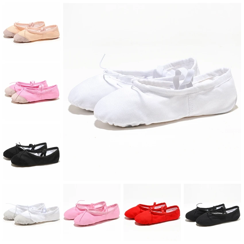 Черные, красные, розовые, белые хлопковые парусиновые туфли на плоской подошве для занятий йогой, гимнастики, балетные туфли для танцев, Детские балетные туфли для девочек и женщин