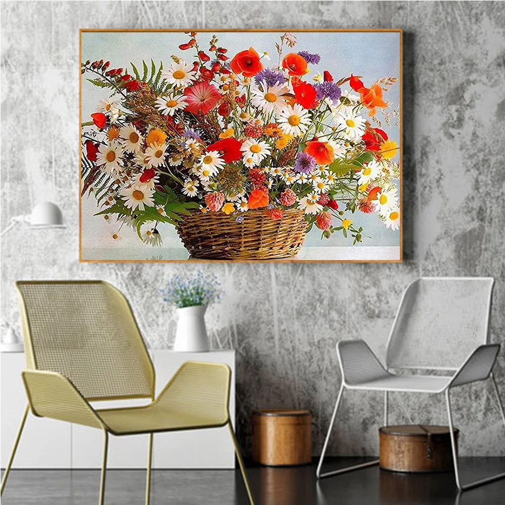 Набор для вышивки крестиком HUACAN, алмазная картина 5d сделай сам с маргариткой, вазой с цветами, мозаика, декор для комнаты