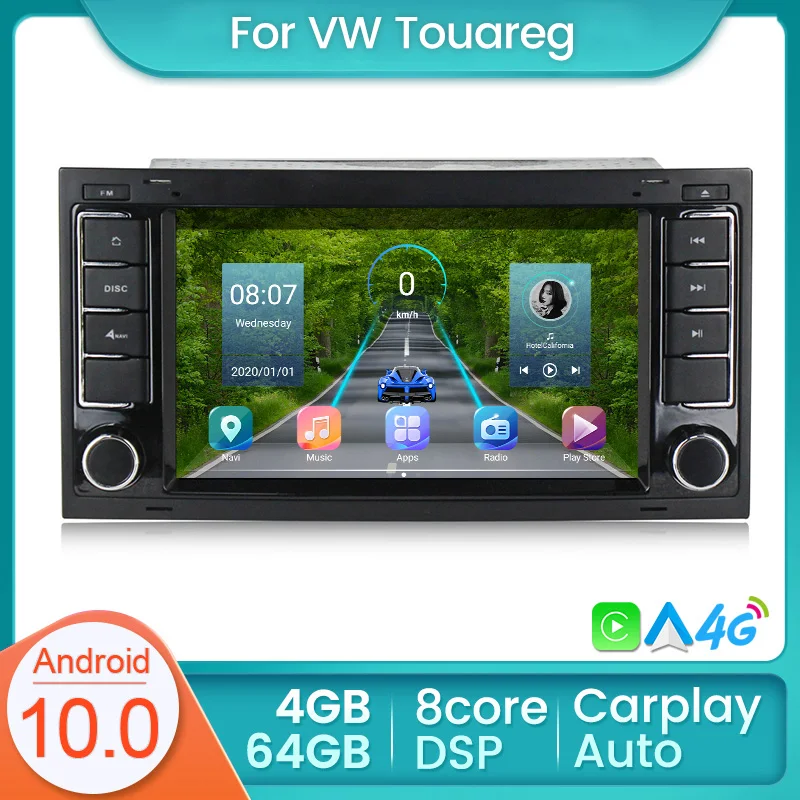 Автомобильный мультимедийный плеер, 4 Гб + 64 ГБ, Android 10, 4G LTE, без DVD, GPS-навигация, радио для VW Touareg T5 Multivan Transporter 2004 - 2011