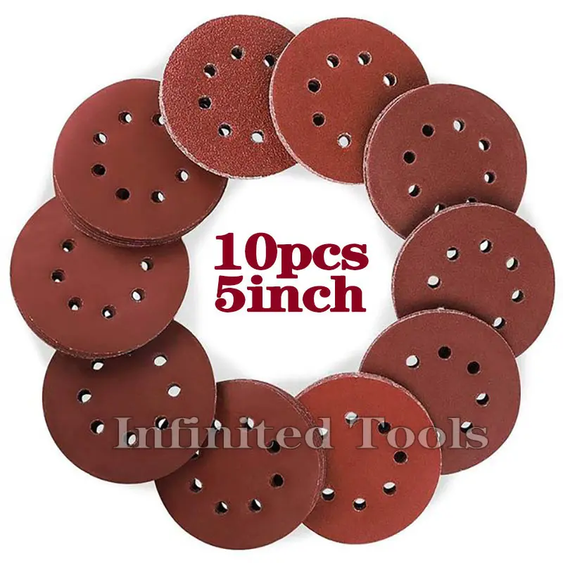 10 шт., шлифовальные диски 125 мм, 8 отверстий, липучка-крючок, наждачная бумага, Зернистость 40 Грит-, шлифовальный диск, абразивные полировальные инструменты
