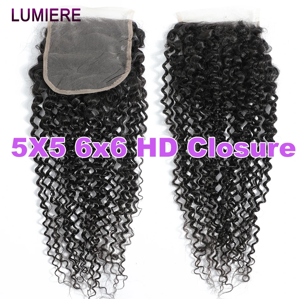 HD кружевное фронтальное Закрытие 5x5 13x4 6X6 незаметное прозрачное кудрявое кружевное закрытие предварительно сорванное с детскими волосами Remy Pure-Hand
