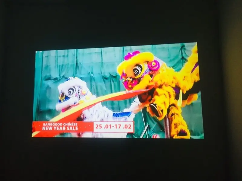 Это довольно хорошо, на самом деле, это гораздо лучше, чем я ожидал. Я использую его с углом обзора 90 дюймов, на светло-синей стене, и цвета впечатляющие. Изображение довольно острое для его разрешения