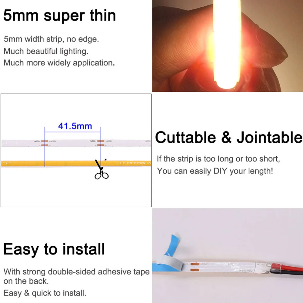 Гибкая светодиодная лента высокой плотности, 5 мм, 384 к, 3000 К, 4000 к, 12 В, 24 в пост. Тока
