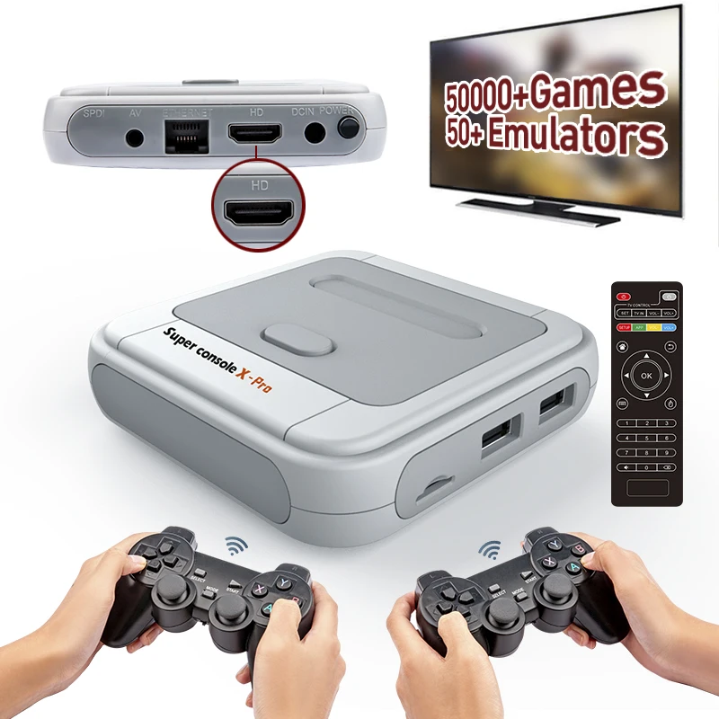 Супер консоль KinHank X Pro, Мини ТВ приставка с Wi-Fi, детская Ретро игровая консоль для PSPN64DCPS1, 50 + эмульаторов, 50000 встроенных игр