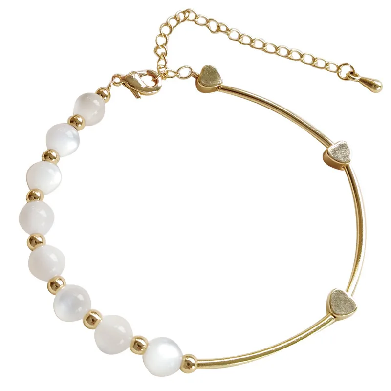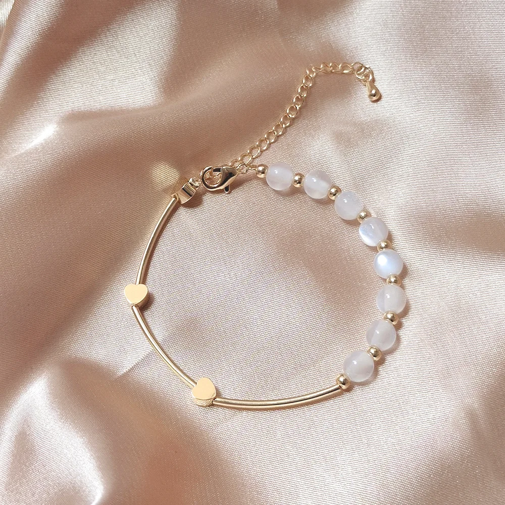 Роскошный женский браслет с белым лунным камнем, модные золотистые Открытые Браслеты с сердцем для женщин, праздничный браслет-цепочка с подвесками и кристаллами