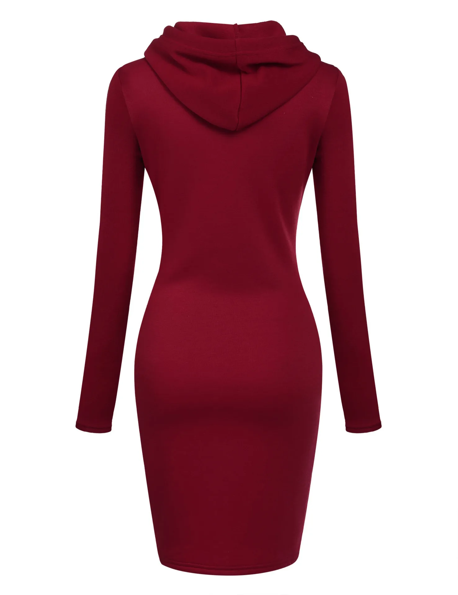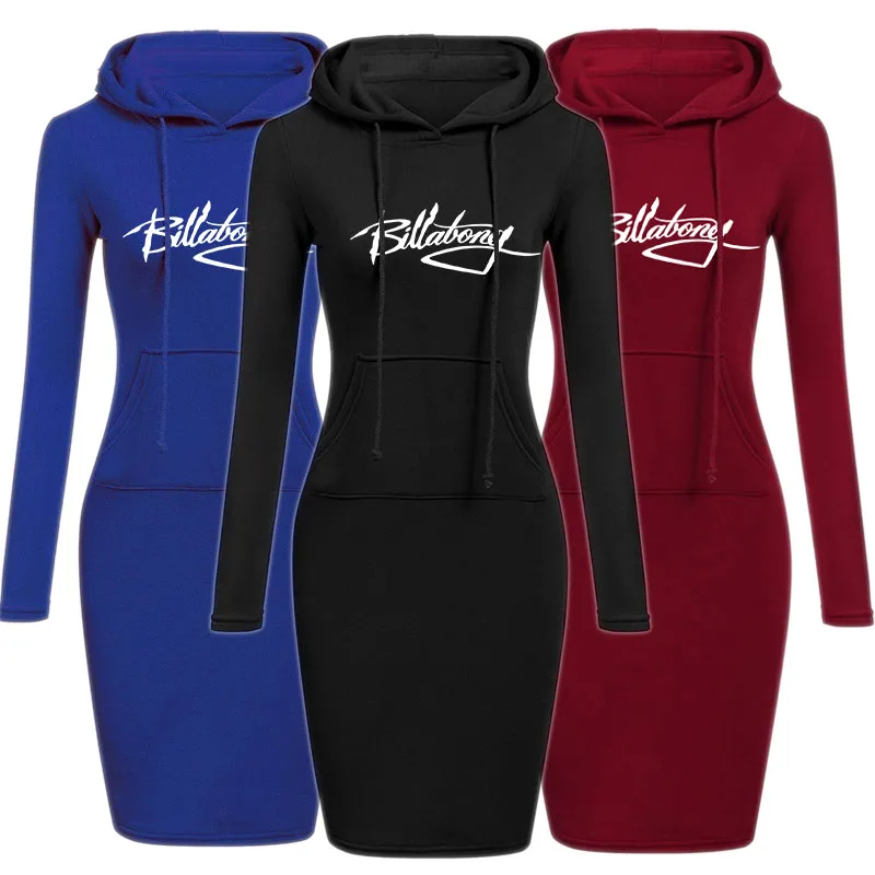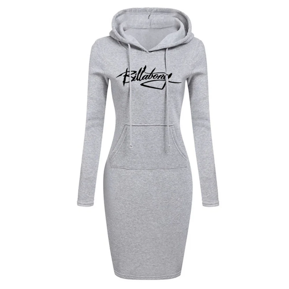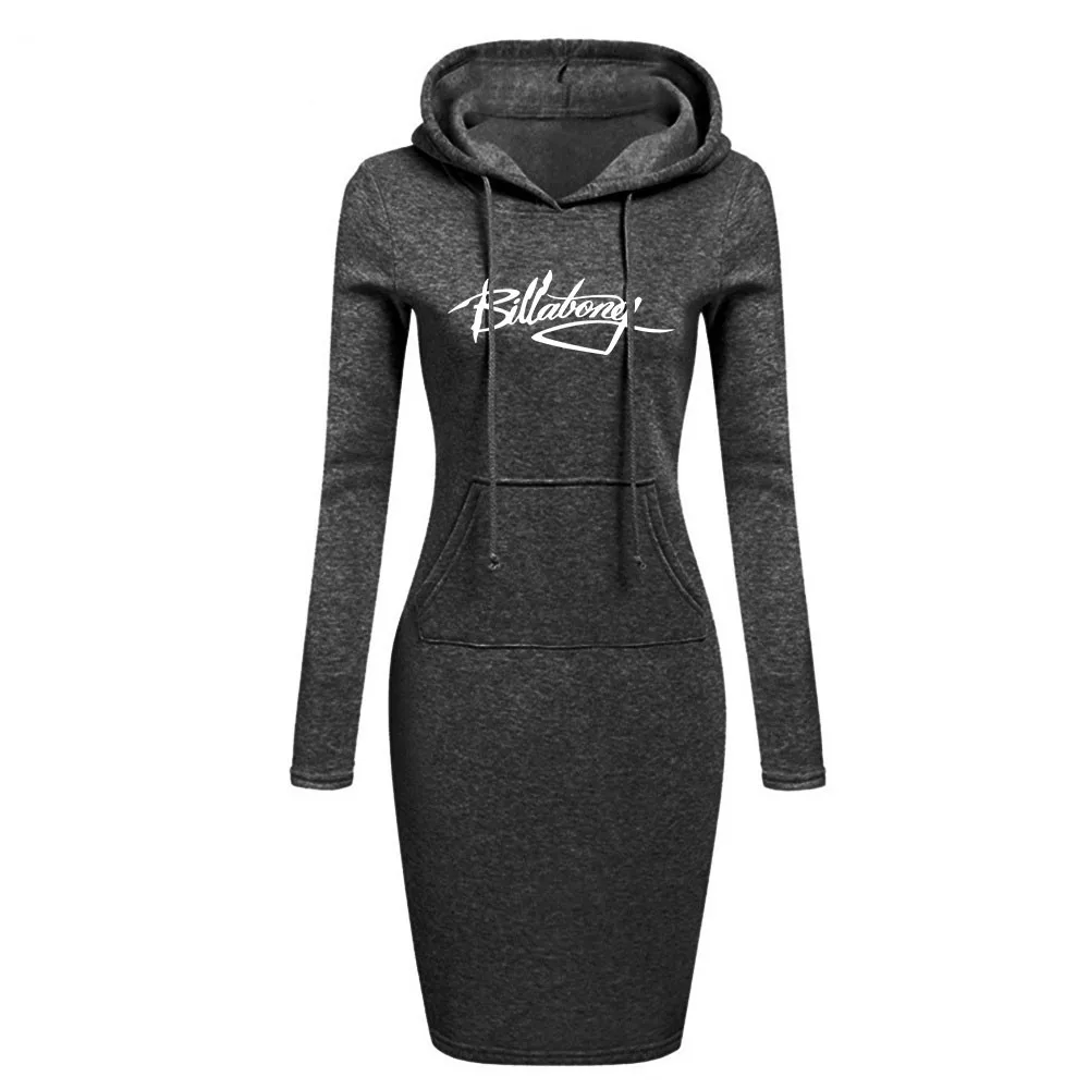 Осенне-зимние женские толстовки, свитшоты, платье с длинным рукавом, женская одежда, пуловеры с капюшоном и карманами на шнурке, платья