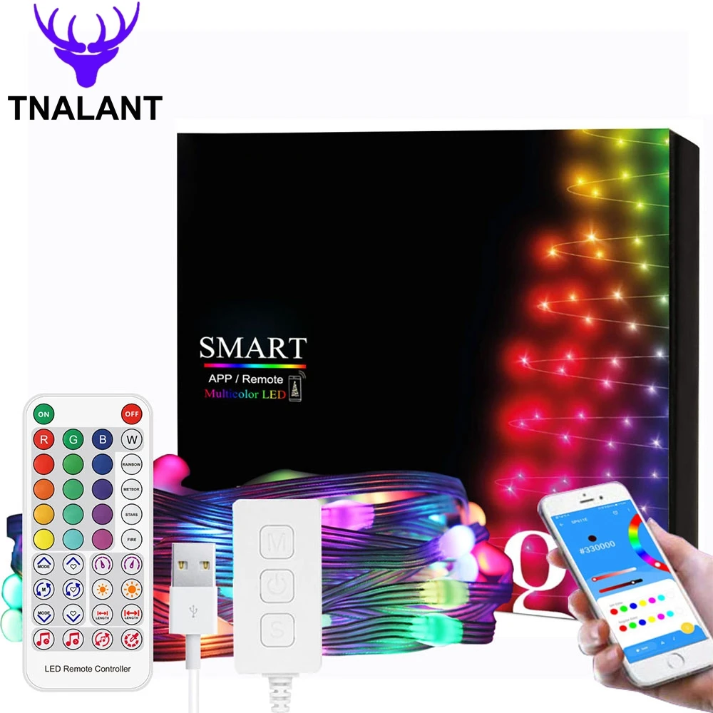 Рождественская светодиодная музыкальная гирлянда WS2812B с Bluetooth, индивидуально Адресуемая, цвет мечты, украшение для вечеринки, дня рождения, USB, 5 В постоянного тока
