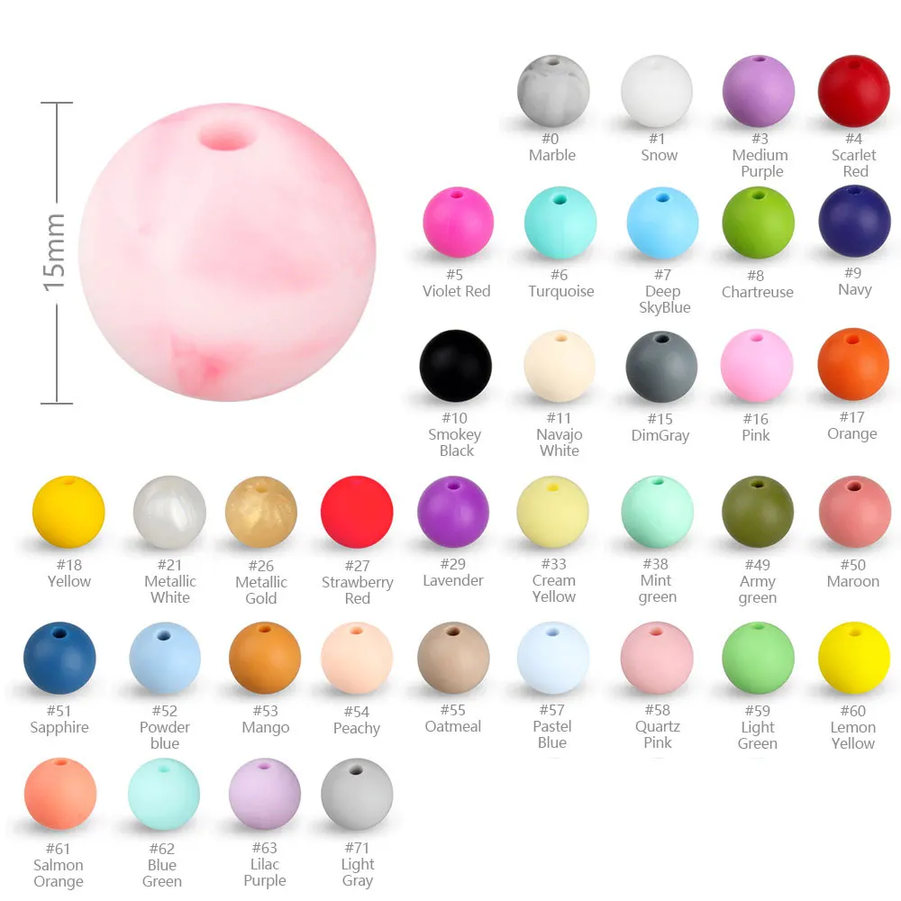 10 шт. силиконовые бусины пищевого класса DIY соски цепи ожерелье из жевательной резинки для ухода за ребенком Силиконовые Прорезыватели аксессуары 15 мм Детские Прорезыватели