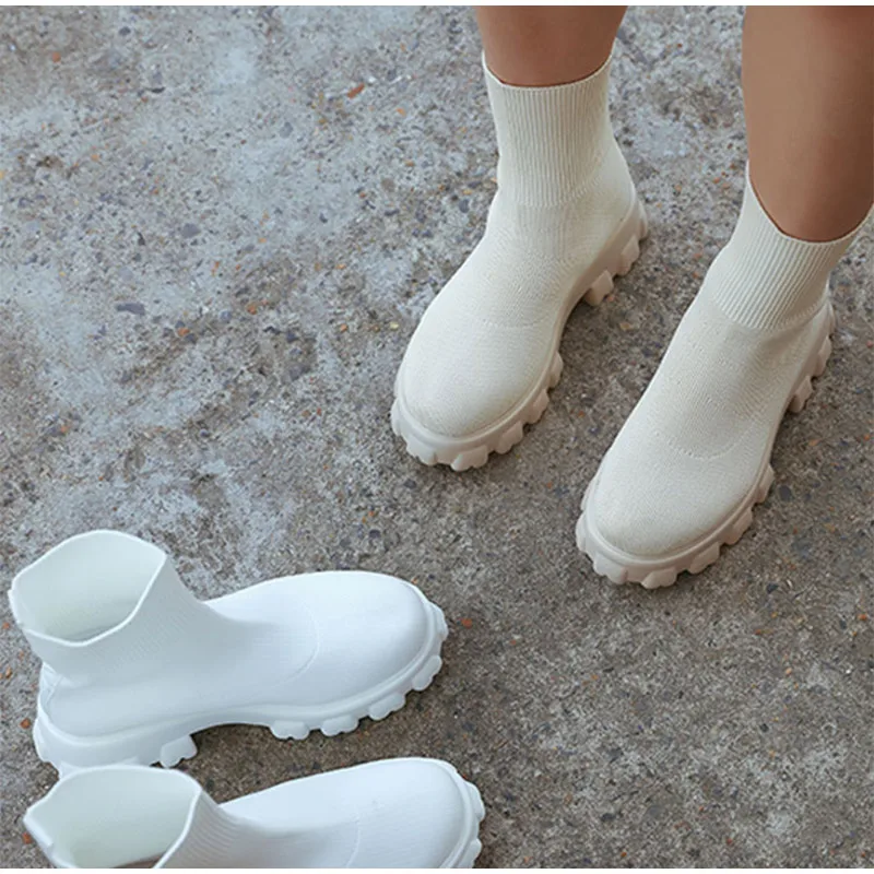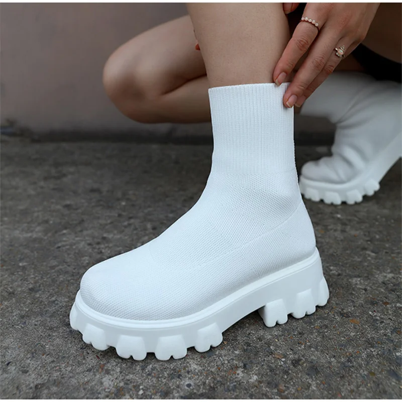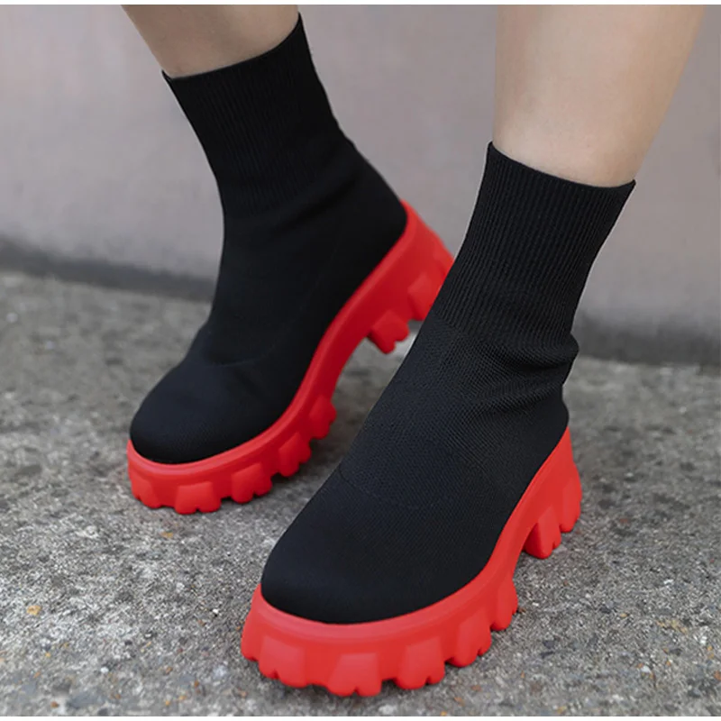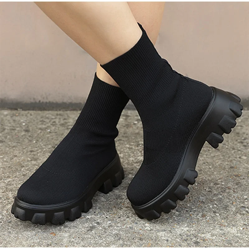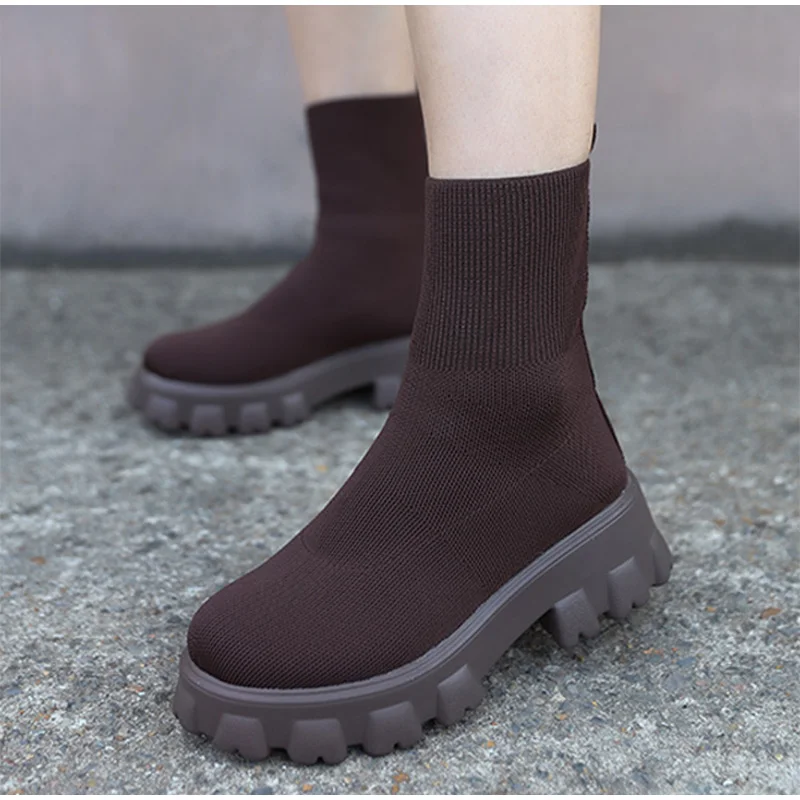 Женские ботинки; Теплые ботильоны на меху без застежки; Вязаные женские зимние носки на платформе; Модные женские ботинки; Новинка 2021 года