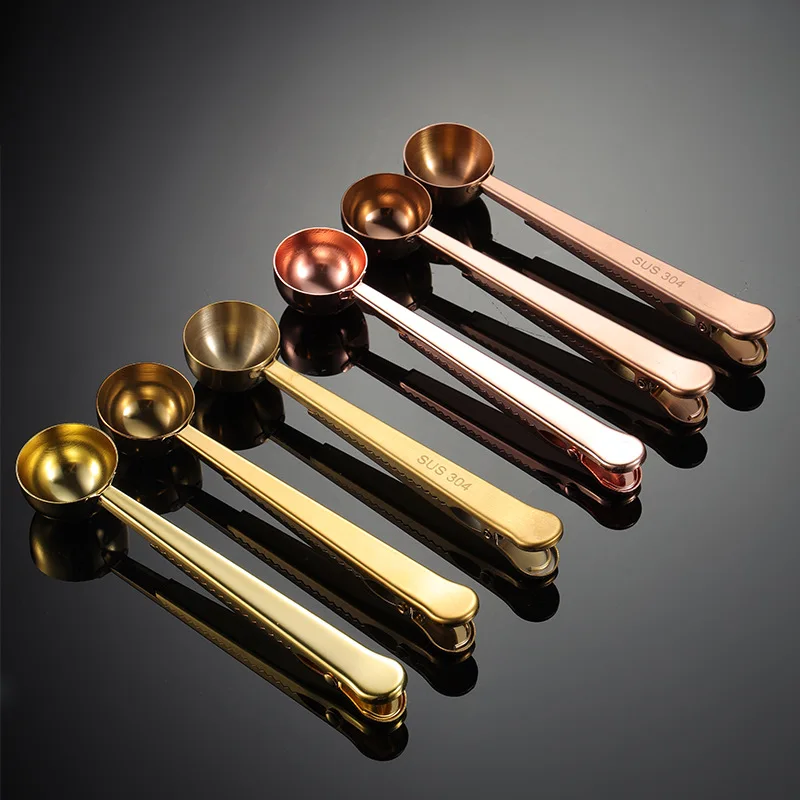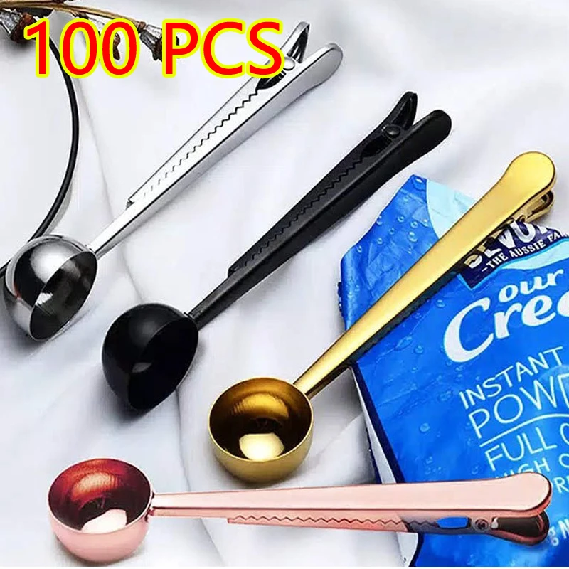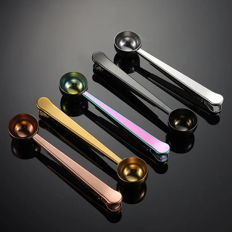 Оптовая продажа, ручка и зажим для кофейной ложки для кухонных принадлежностей, жидкие приправы для молочного порошка, хорошие мерные ложки для уплотнения, посуда для кофе