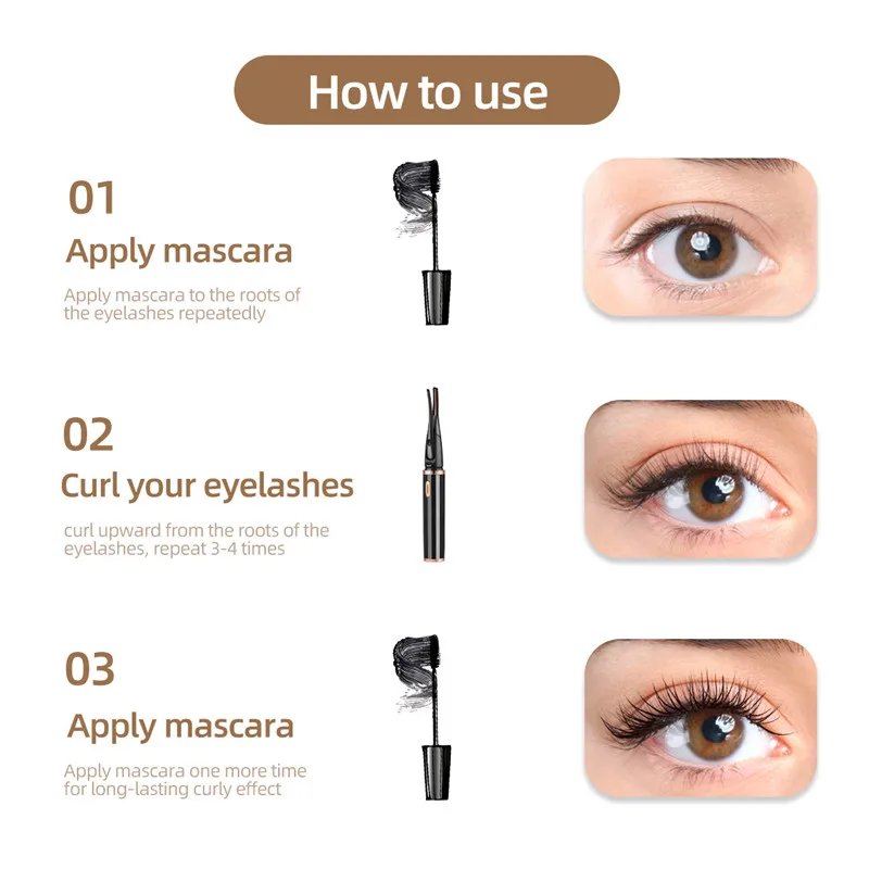 4. 10s быстрый нагрев, 60s завивайте ресницы. Используйте тушь для ресниц, чтобы сделать ресницы более густыми, длинными и вьющимися.