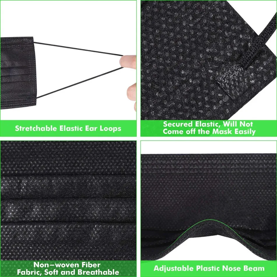 Одноразовая черная маска для лица, 3-слойная защитная дышащая маска...