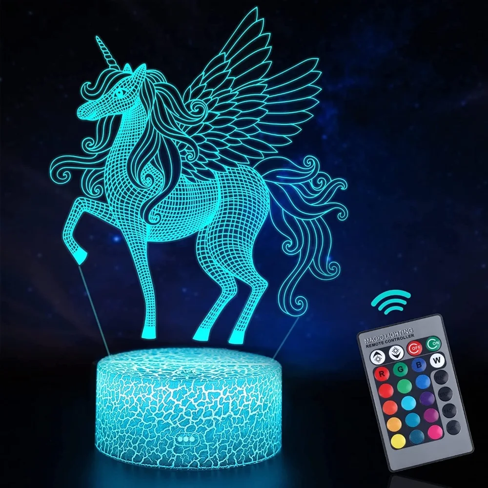 Ночсветильник Nighdn с единорогом 3d, иллюзия, ночсветильник для детей, подарок на день рождения, для девочек, украшение спальни, светодиодная настольная лампа с USB