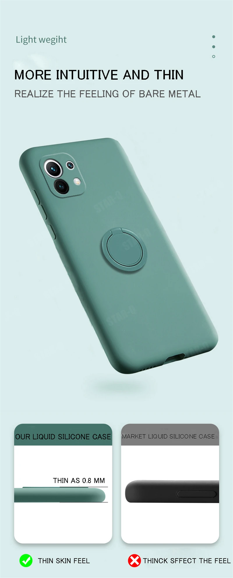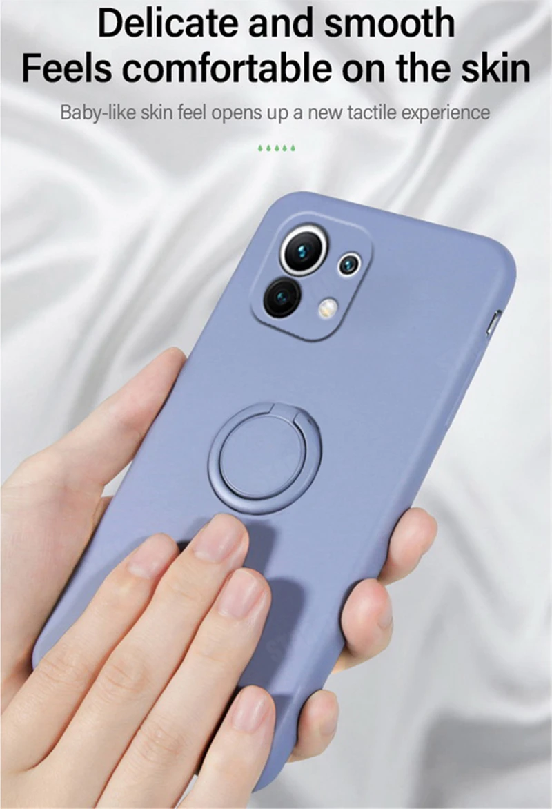 Жидкий силиконовый чехол с кольцом-держателем для телефона Xiaomi Mi 11 Lite 5g Ne 10 9 8 Se Mi11 A3 Ultra 10t Pro 11 lite, оригинальная задняя крышка